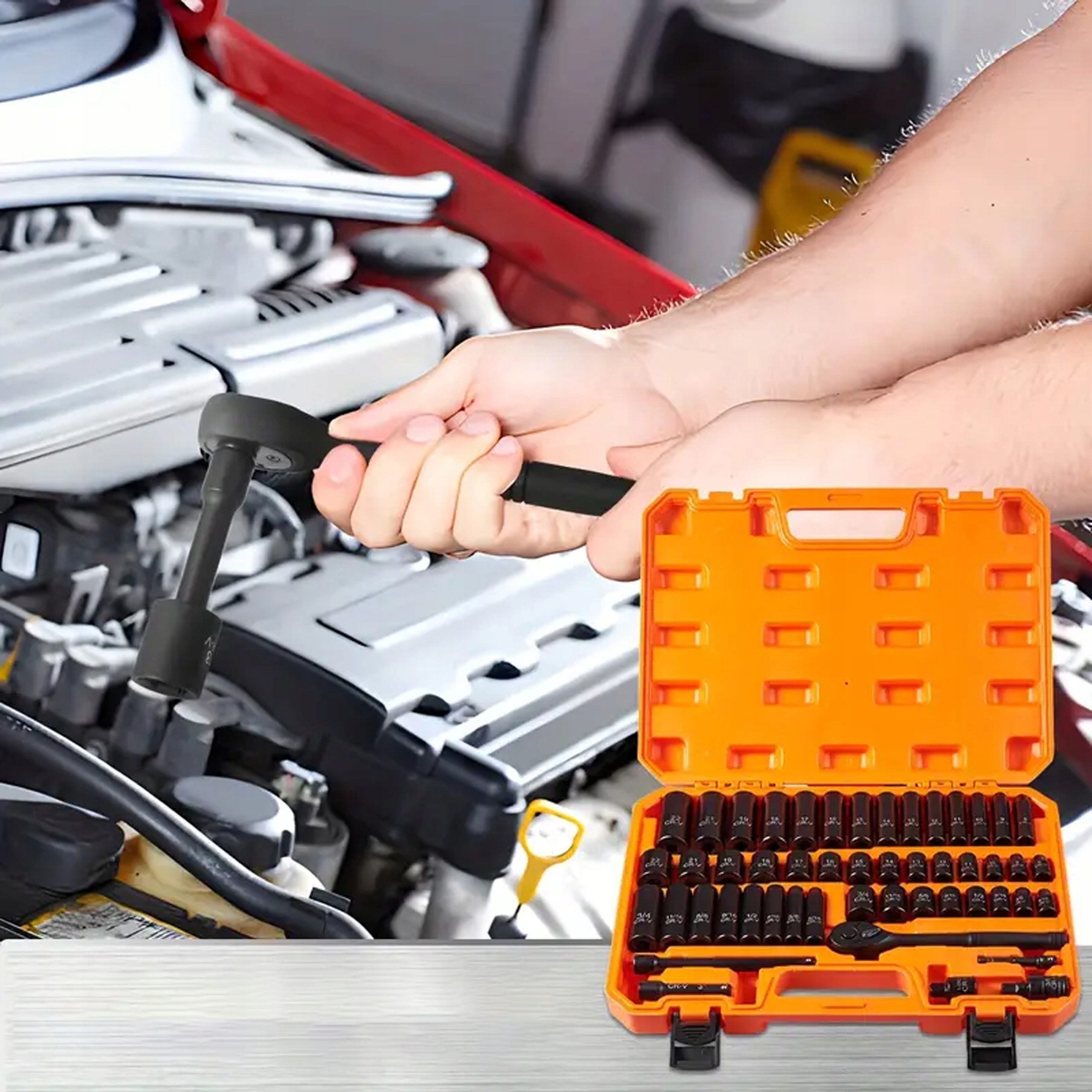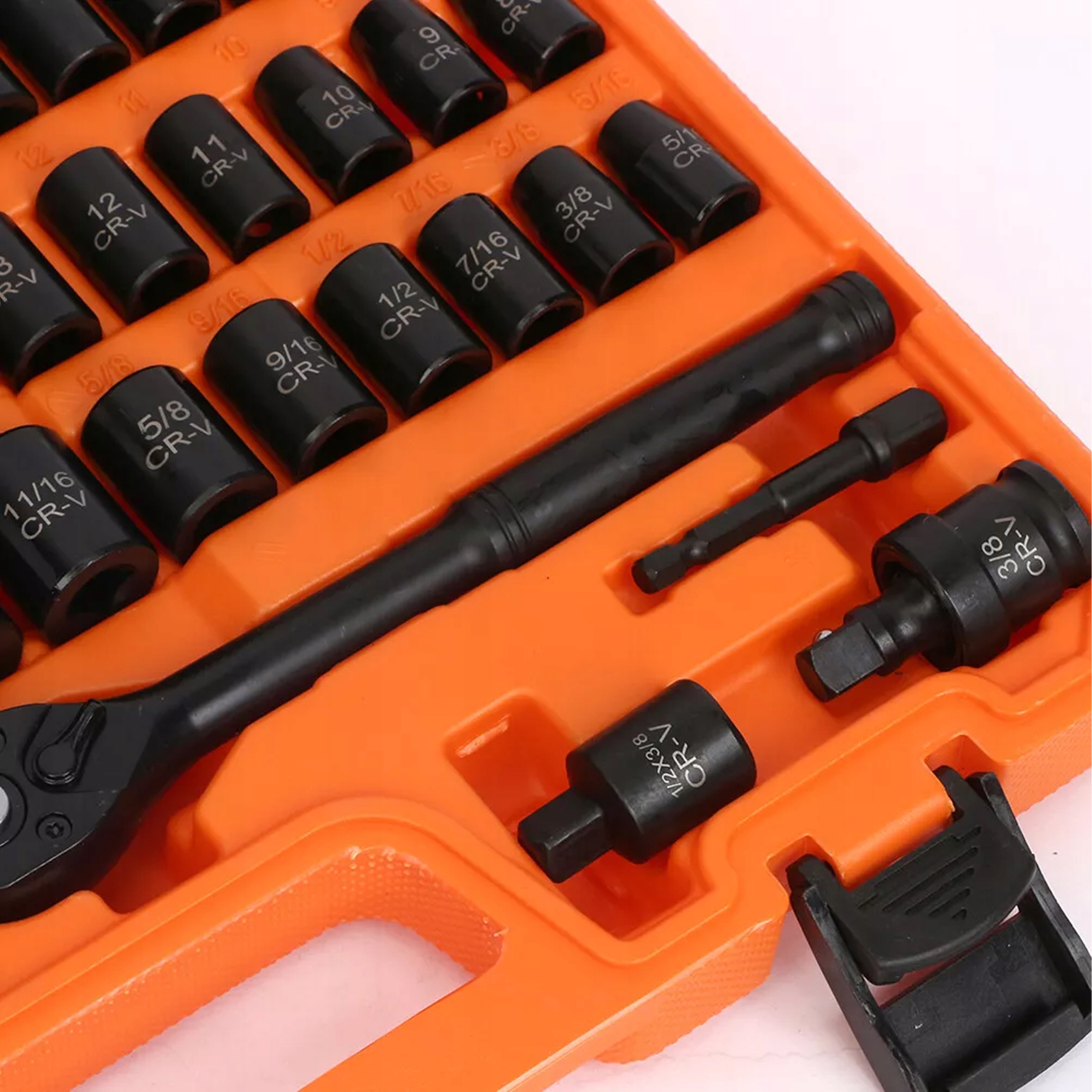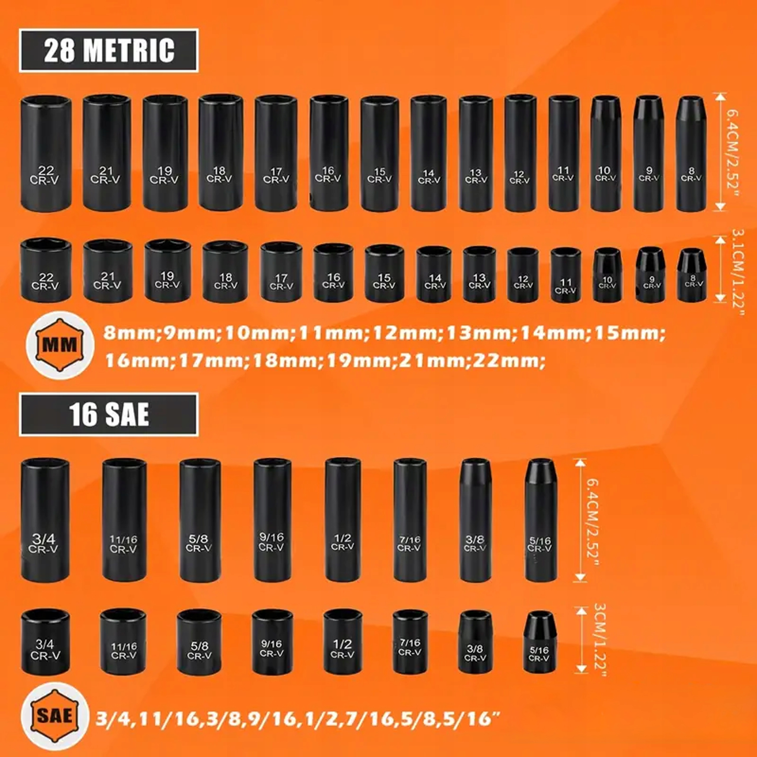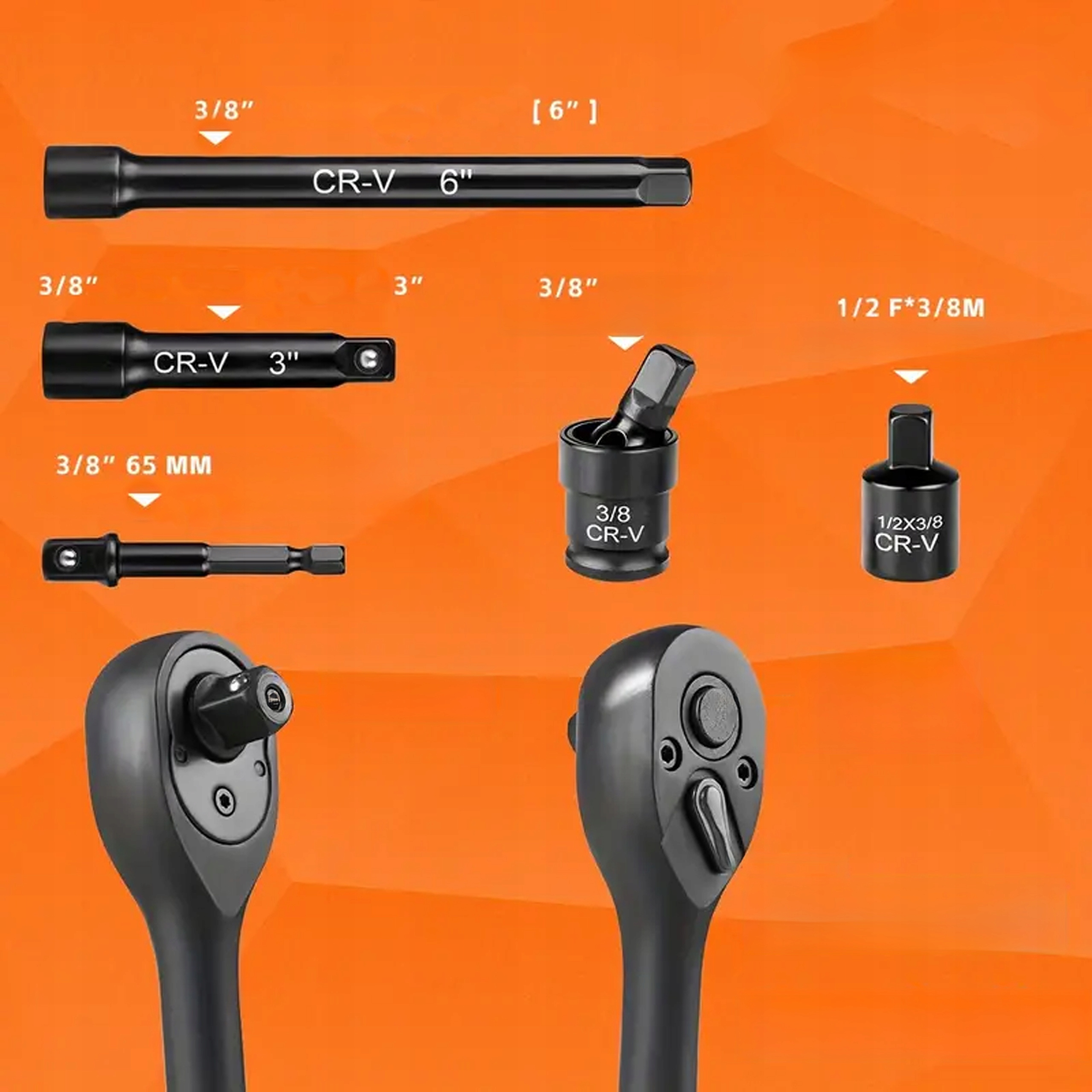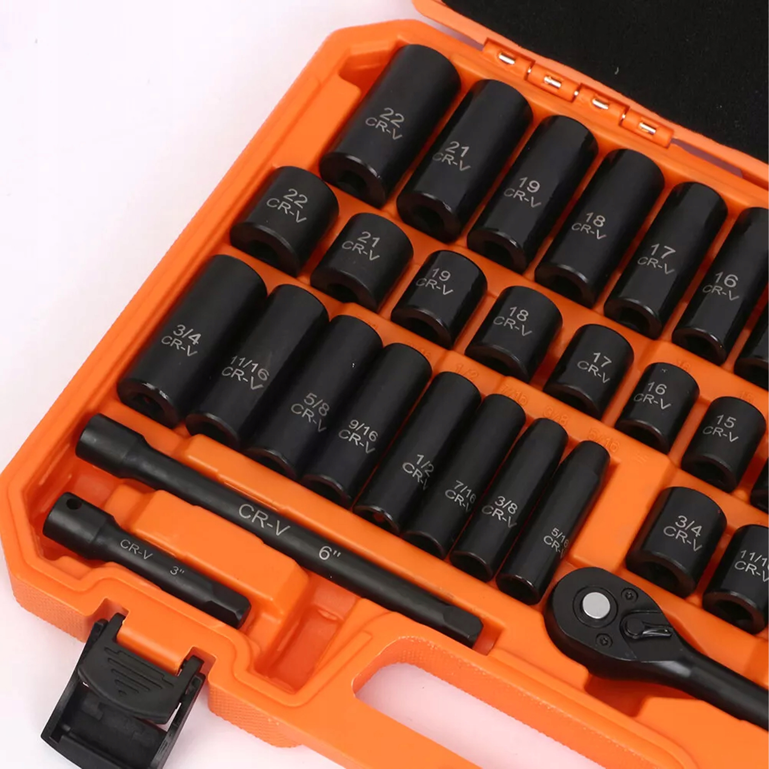 ⭐️ Набор ударных головок 3/8 дюйма, 50 шт. — SAE и метрические, Cr-V, трещотка 3/8 дюйма, удлинитель и универсальный соединитель ⭐️