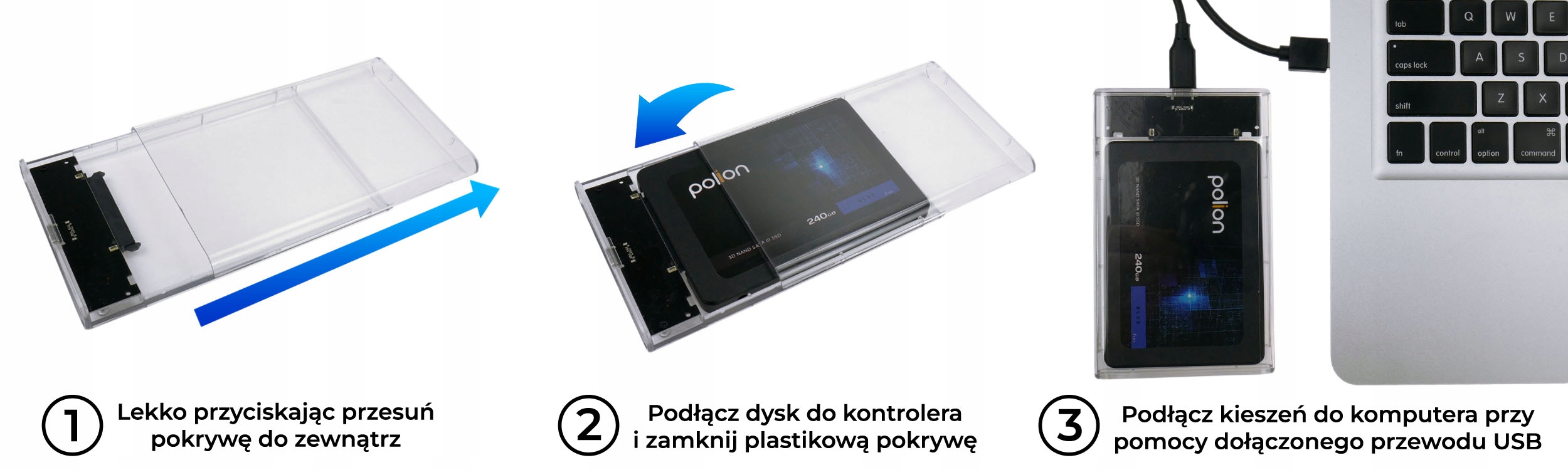 Прозрачный внешний карман для подключения 2,5 -Inch диск к компьютеру или ноутбуку с использованием кабеля USB . Компактный размер и очень быстрая передача данных позволяют легко получить доступ к файлам, где бы вы ни находились. Корпус изготовлен из высококачественного пластика, благодаря которому смонтированный диск полностью защищен от внешних факторов во время переноса. Карман поддерживает USB 3.2 Gen 1 и имеет разъем USB-C , который достигает передачи данных до 6 ГБ/с для диска SATA III.