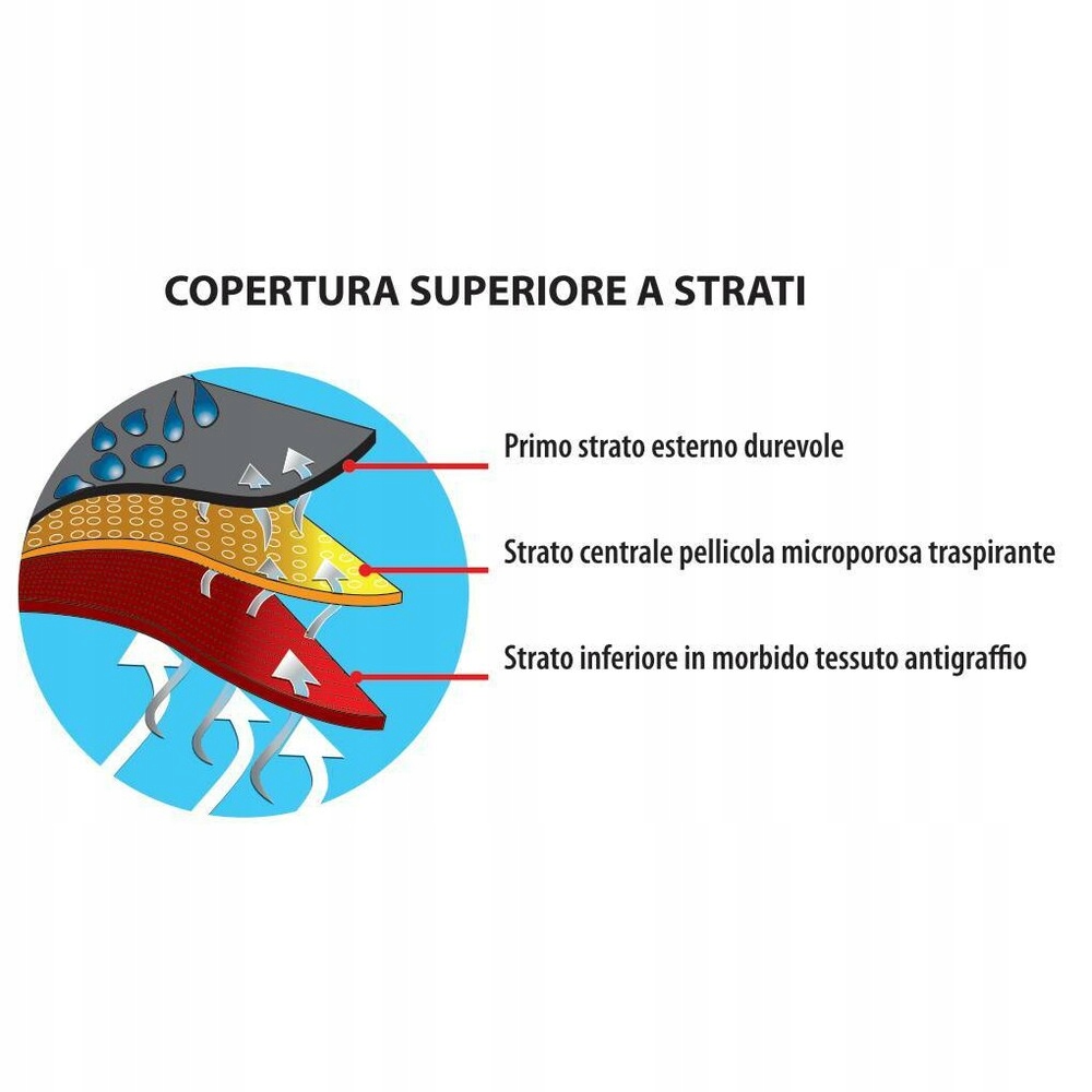 - Сверху и спереди 3 слоя водонепроницаемого и дышащего нетканого материала.