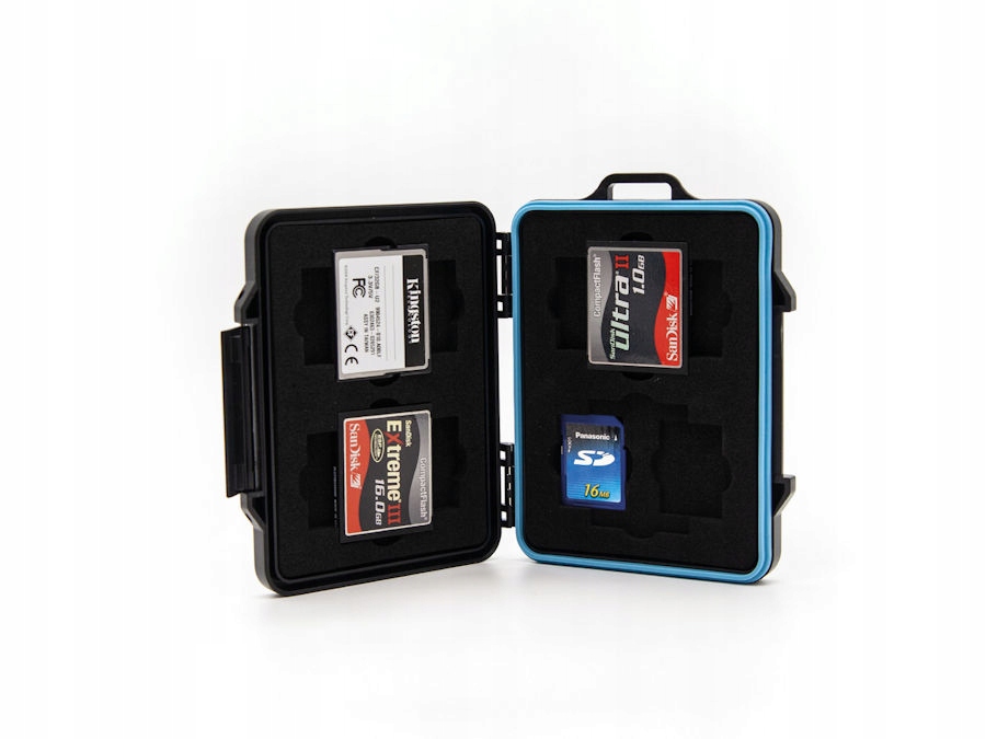 устойчив к пыли и влаге и позволит вам хранение карт microSD и SD даже в экстремальных условиях. В него можно одновременно разместить до 8 карт SD и до 4 карт CF (Compact Flash). Входящий в комплект карабин позволит удобно закрепить чехол в сумке, гарантируя, что он не выпадет при транспортировке. Это идеальный подарок для любителей фотографии или графики. Покрытие из АБС-пластика не только прочное, но и элегантное. Наполнитель из пены EVA защитит карты от повреждений, а силиконовая защита поглощает удары, защищая от капель воды и пыли. Кейс закрывается прочной пряжкой, которая предотвращает выпадение содержимого.