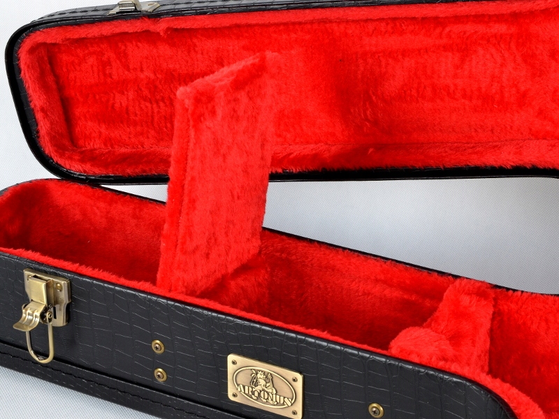 Корпус выполнен из деревянной фанеры с крышкой «арка-топ», которая прекрасно защищает инструмент от повреждений. Примерный вес 4,4 кг.