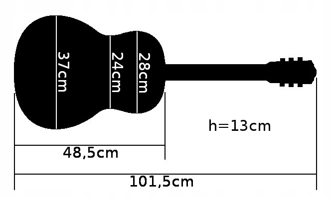 Внешние размеры футляра для классической гитары: 107см х 44см х 17,5см. Максимальные размеры инструмента, который может поместиться в этом случае, указаны на рисунке ниже.
