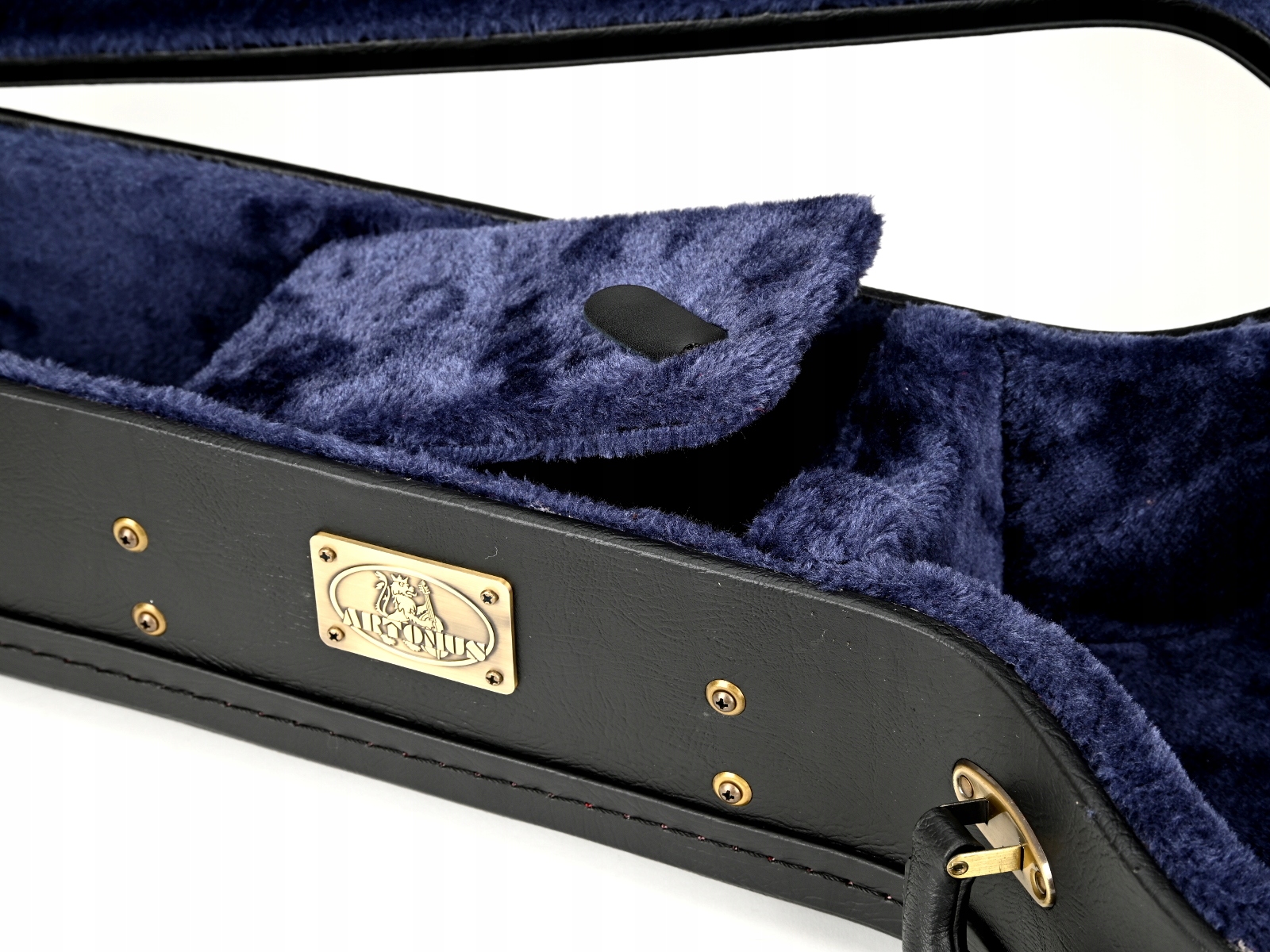 Корпус выполнен из деревянной фанеры с крышкой «арка-топ», которая прекрасно защищает инструмент от повреждений. Примерный вес 4,4 кг.
