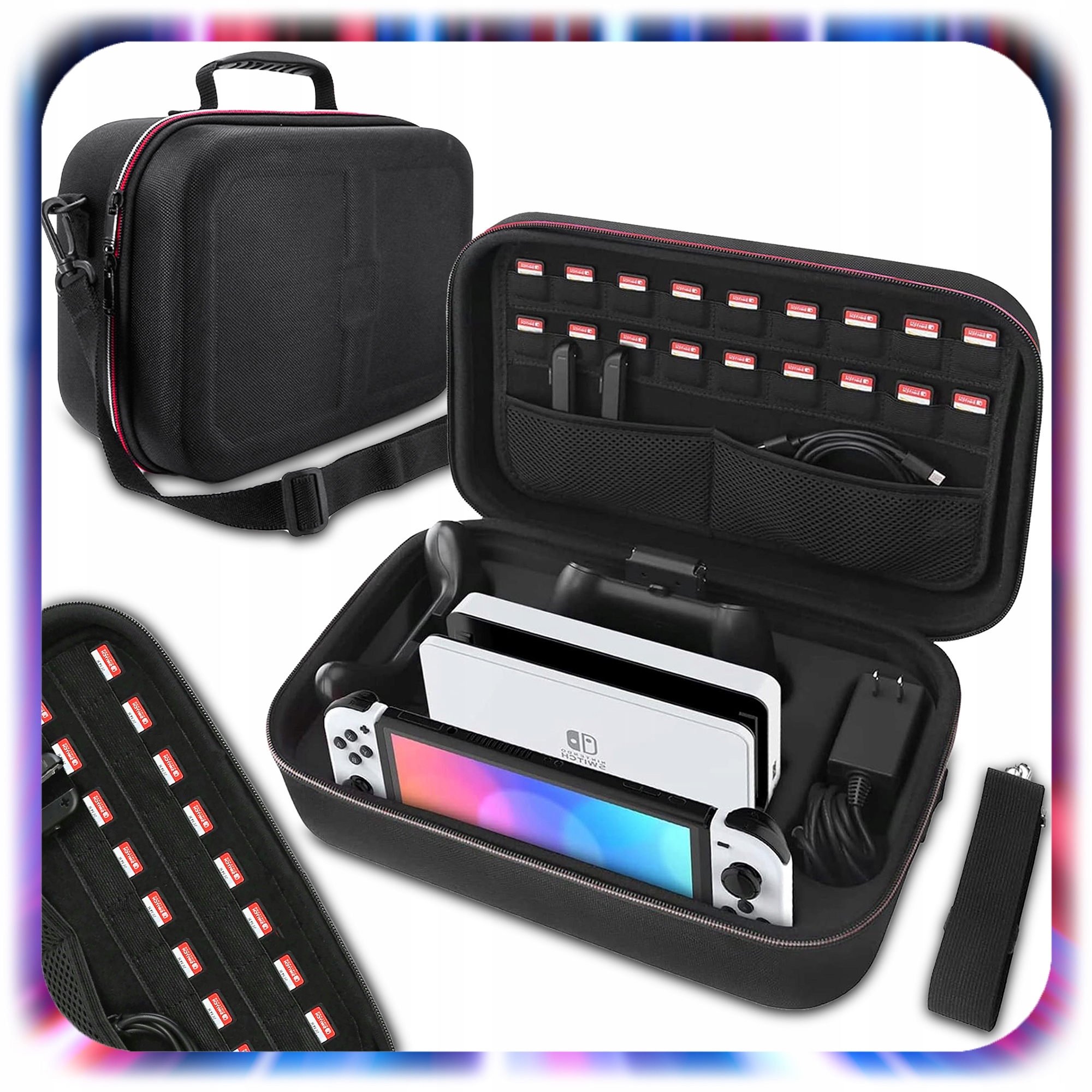 ЧЕХОЛ ДЛЯ КОНСОЛИ NINTENDO SWITCH OLED V1 V2, ЧЕХОЛ-ОРГАНИЗАТОР, 18 СЛОТ