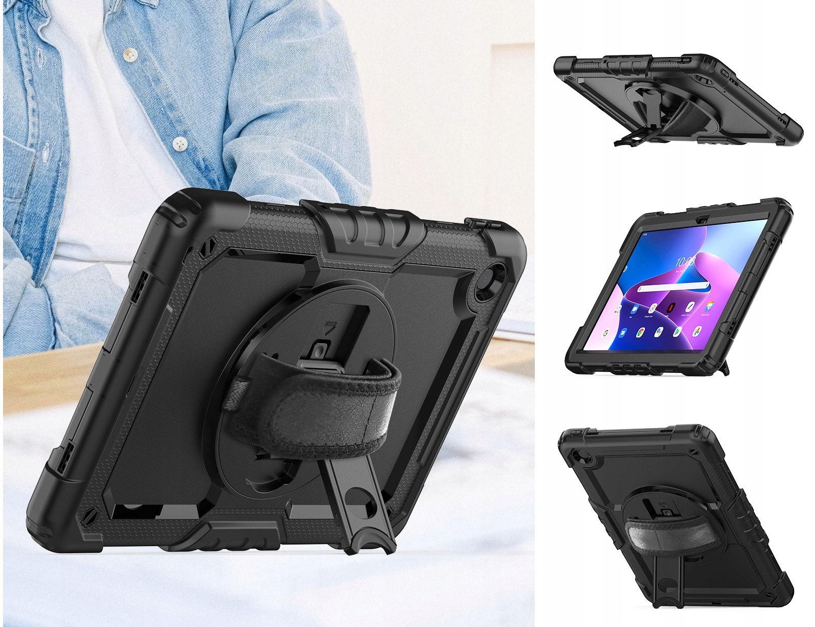 Кейс сделан очень прочно для людей, которые ценят идеальную защиту, сохраняя при этом превосходный внешний вид. Наш планшет защищен на 100%. Вам не придется беспокоиться о царапинах или механических повреждениях корпуса, поскольку корпус выполнен из мягкого, поглощающего падения материала ТПУ и устойчивого к царапинам поликарбоната. Чехол имеет ручку для комфортной работы, письма, чтения или игр, а также безопасное переноску планшета благодаря специальному ремешку, который также входит в комплект, а также функцию подставки, которая делает работу на планшете максимально комфортной. Передняя часть защищена стеклом, а места, подверженные воздействию воды, пыли и песка, защищены уплотнителями.