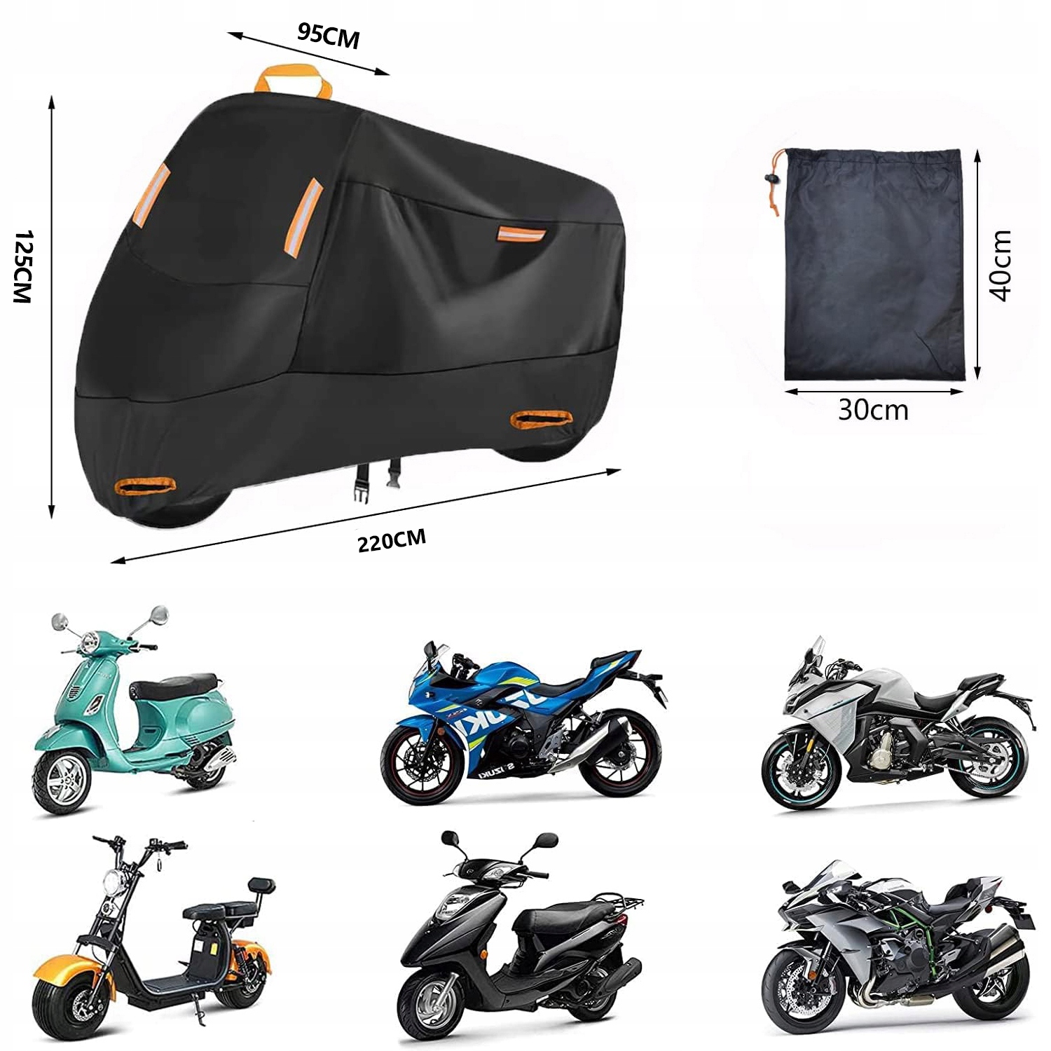 🏍️4 светоотражающие полосы и лямка-ручка: Этот мотоциклетный брезент имеет 4 хорошо заметные светоотражающие полосы: 2 спереди и 2 сзади. Сделайте свой велосипед более заметным и заметным в темноте. Верхняя часть оснащена лямочной ручкой.