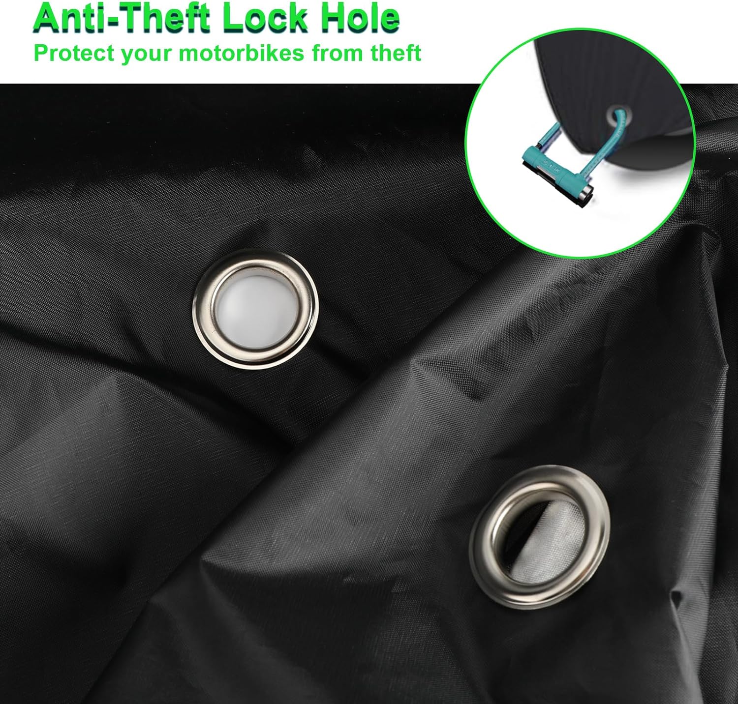 【Подходит для различных моделей транспортных средств】 - Полотенце для улицы для мотоцикла, XXXL 265 x 105 x 125 см / 104 x 41 x 49 дюймов A, идеально подходит для большинства мотоциклов. Легко носить с собой и хранить.】 - Чехол для мотоцикла поставляется с сумкой на шнурке. Чехол для мотоцикла упакован и портативен, поэтому вы можете взять его с собой для вашего уличного мотоцикла. 【Водонепроницаемый Дизайн】 - Водонепроницаемый, полностью водонепроницаемый, прочный и полностью герметичный швы со специальными предохранительными лентами для предотвращения перелива воды. 【Дизайн с замковым отверстием】 - Водонепроницаемый чехол для мотоцикла снаружи, на переднем нижнем конце есть две дополнительные петли, через которые можно вставить брезент и оптимально закрепить замок мотоцикла. 【Высококачественный материал】 - Чехол для уличного мотоцикла vvhippo, изготовленный из прочной полиэфирной ткани 190T, хорошо защитит ваш мотоцикл. от ветра, дождя, снега, ультрафиолетовых лучей, пыли, грязи, погодных условий и возможных царапин.