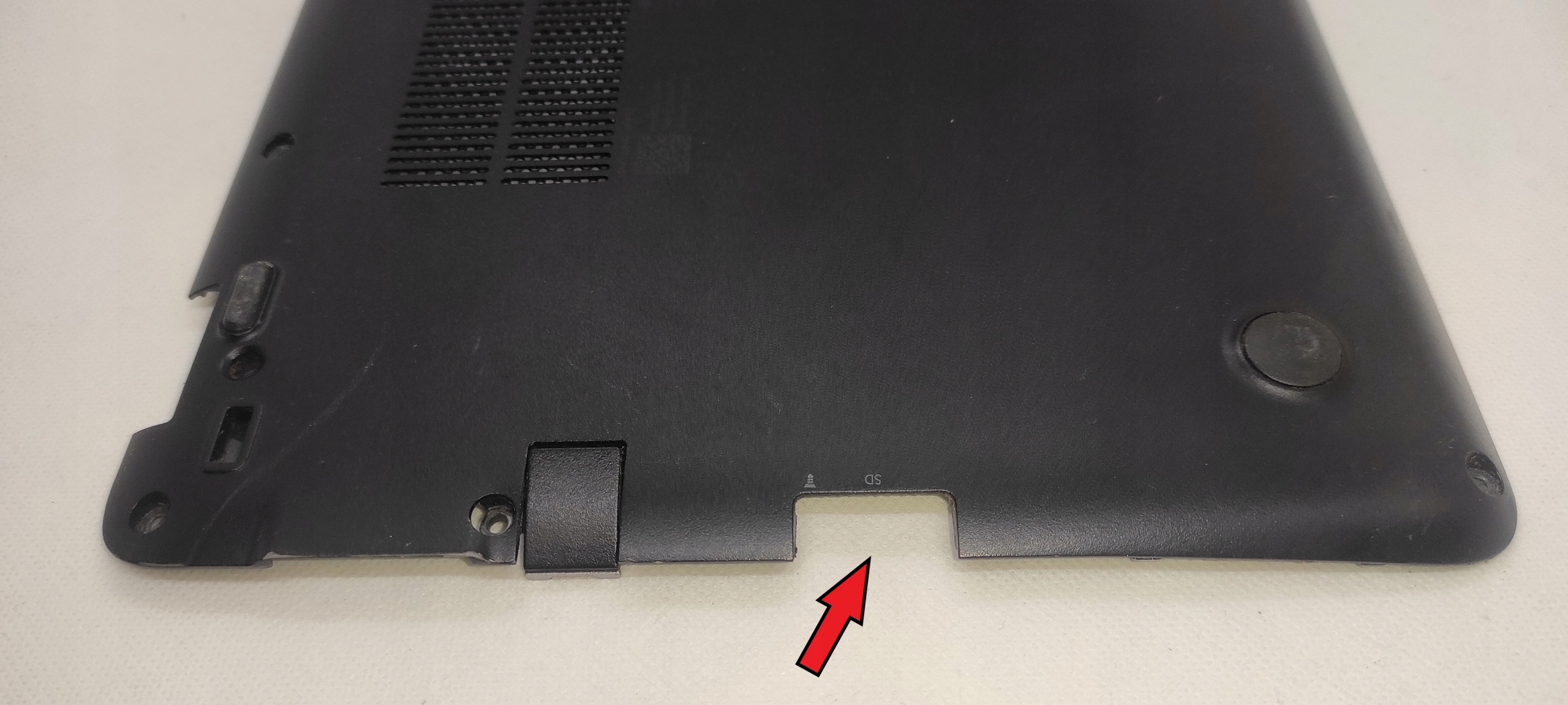 Предмет продажи — б/у нижний кожух с комплектной сетевой крышкой для ноутбука HP EliteBook 840 G3. Визуальное состояние соответствует фотографиям, видимые следы использования (царапины, потертости), сломанный элемент возле устройства чтения карт SD, других повреждений нет.