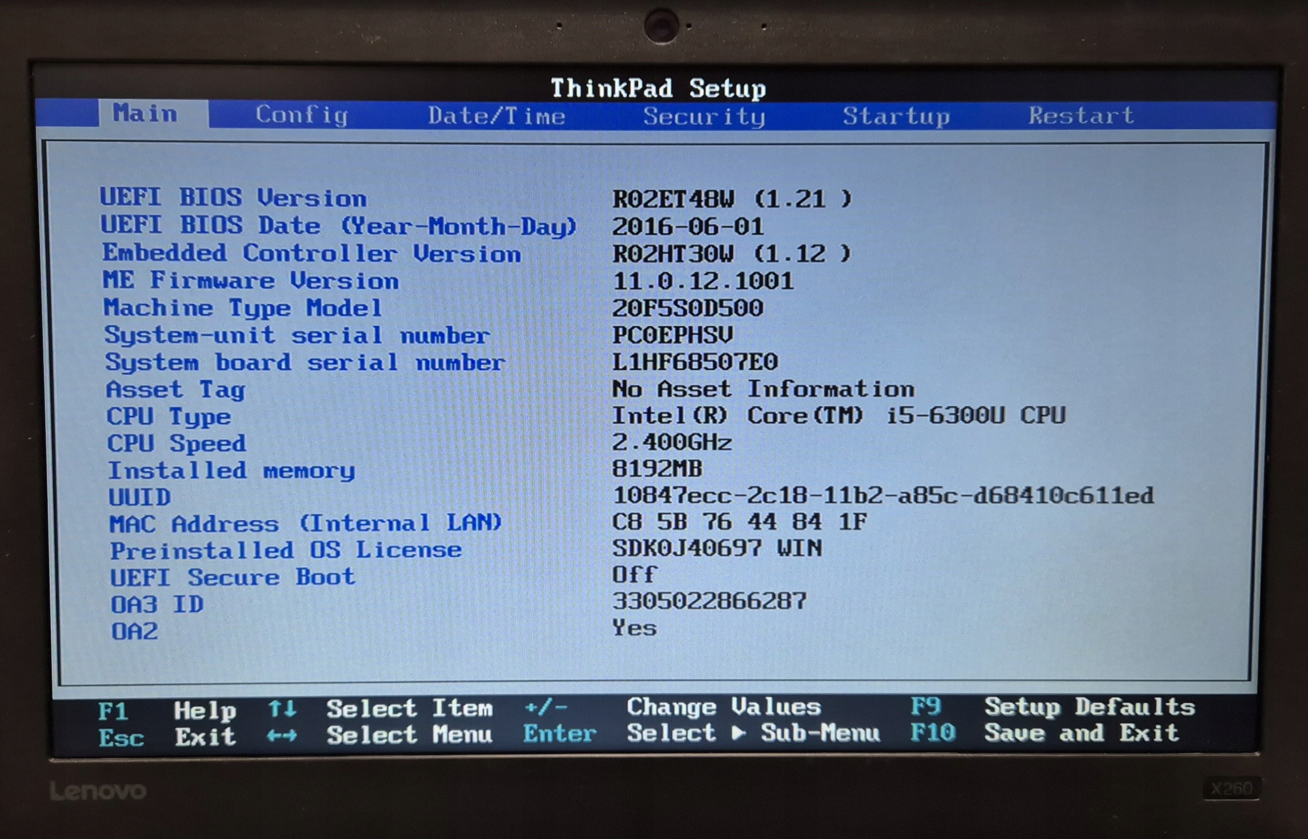 Чохол для ноутбука Lenovo X260 з процесором i5-6300U