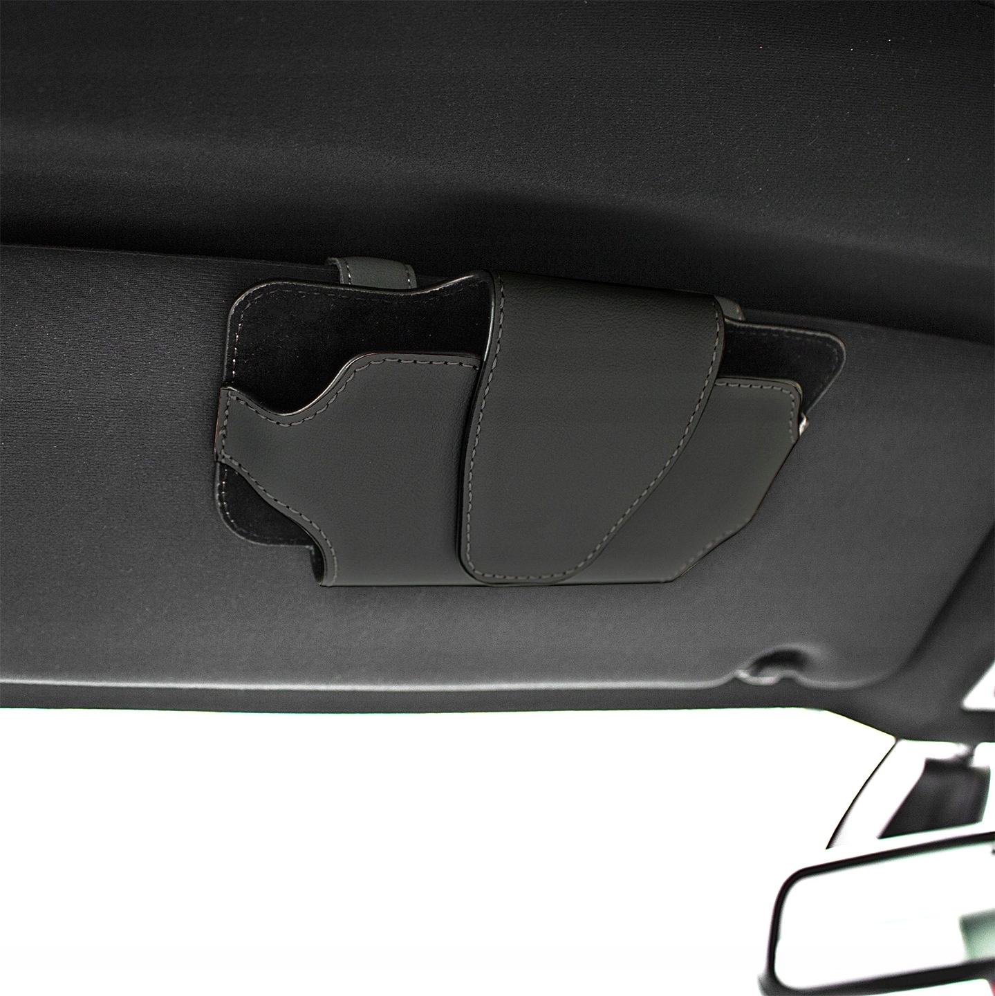 КАР -очки из высококачественного материала (кожа PU, нейтральный, без запаха). легкая установка на солнцезащитном креме, практическое магнитное закрытие, обеспечивает быстрый доступ и некоторую защиту. Мягкий центр корпуса защищает очки от царапин. черный