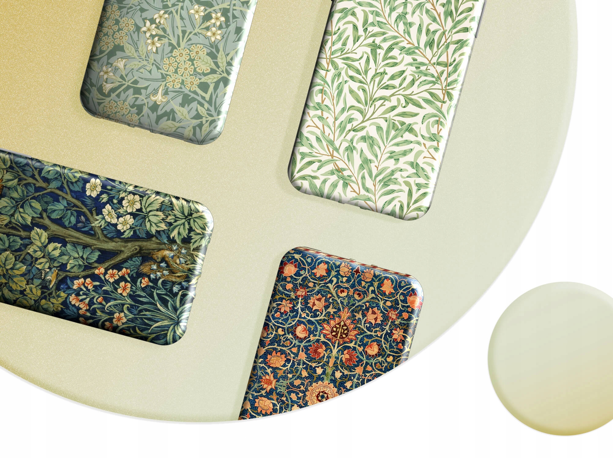 Уильям Моррис — английский рисовальщик, художник и архитектор, считающийся самым влиятельным дизайнером XIX века. Его отличительными чертами являются арабески, S-флоры, декоративные линии и цветочные мотивы. Посмотрите, какое изображение вам нравится, и мы напечатаем его на чехле вашего телефона.