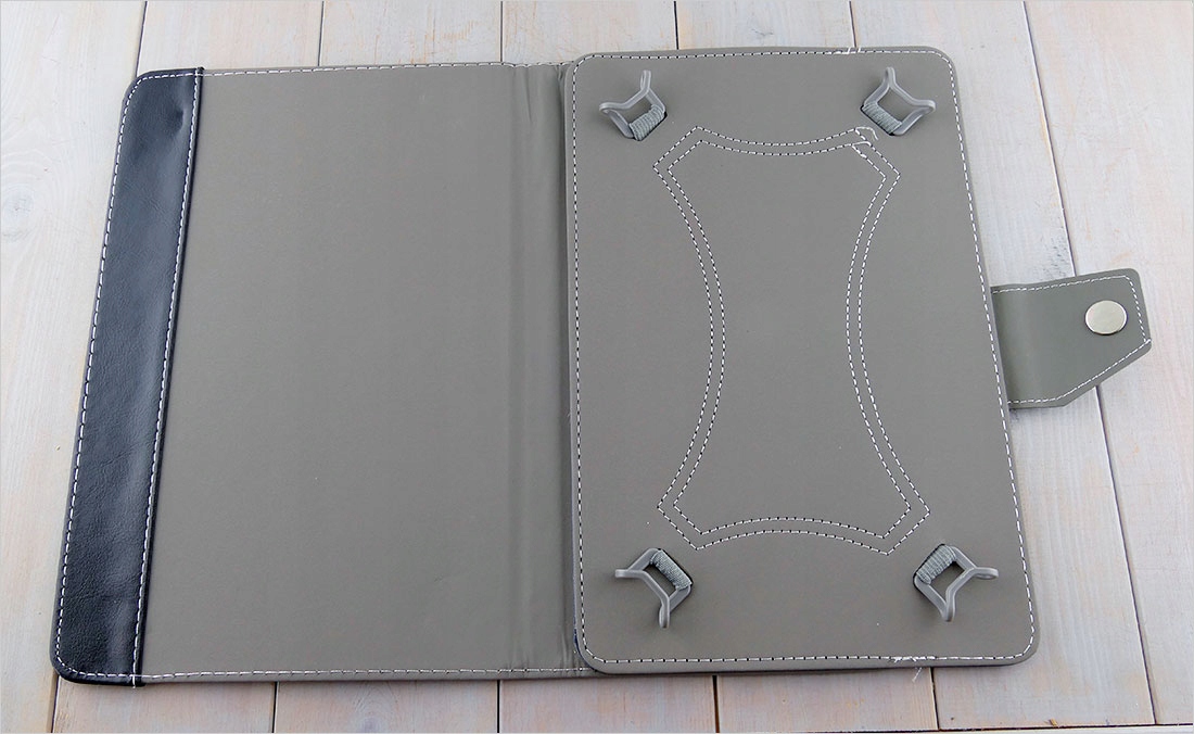 Угловые крючки, хотя и выглядят филигранно, чрезвычайно прочны и очень хорошо удерживают планшет в чехле.