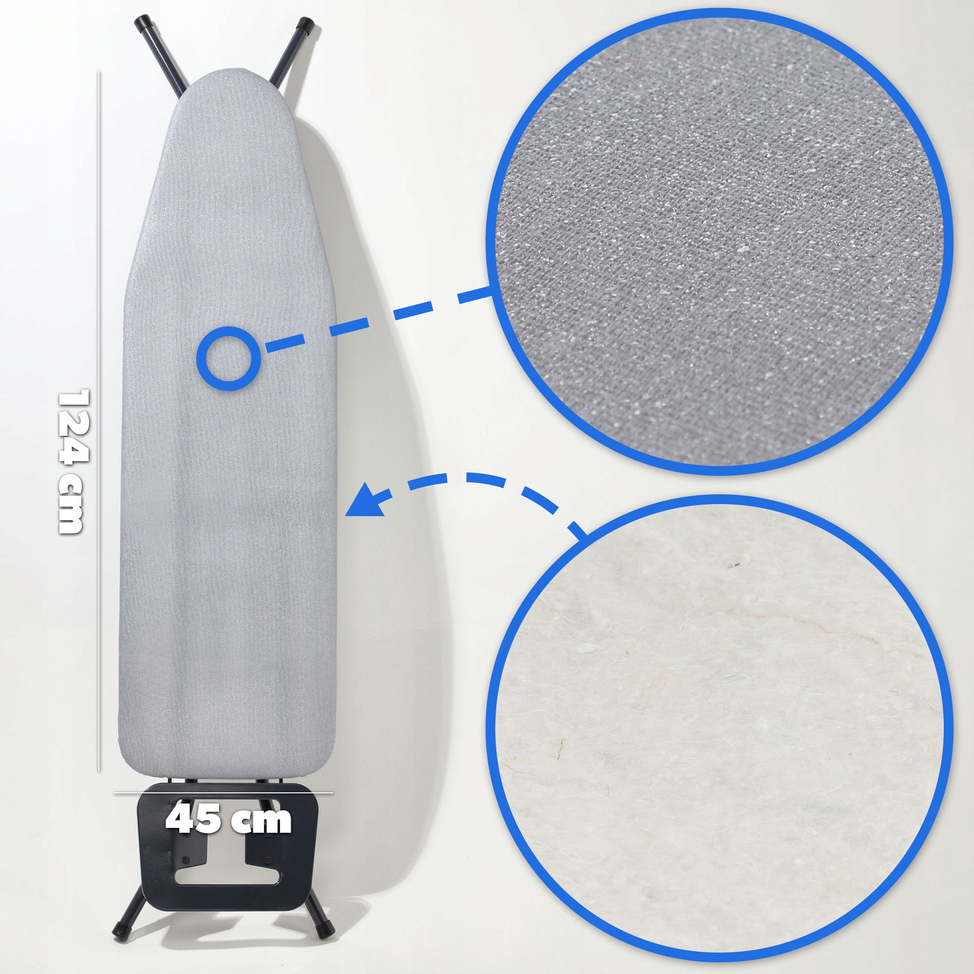 ✅ ДВА РАЗМЕРА - неважно, если у вас меньший одна или большая гладильная доска. Наш чехол доступен в двух практичных размерах: 126x45 см и 140x50 см. Он идеально адаптируется к вашим потребностям.