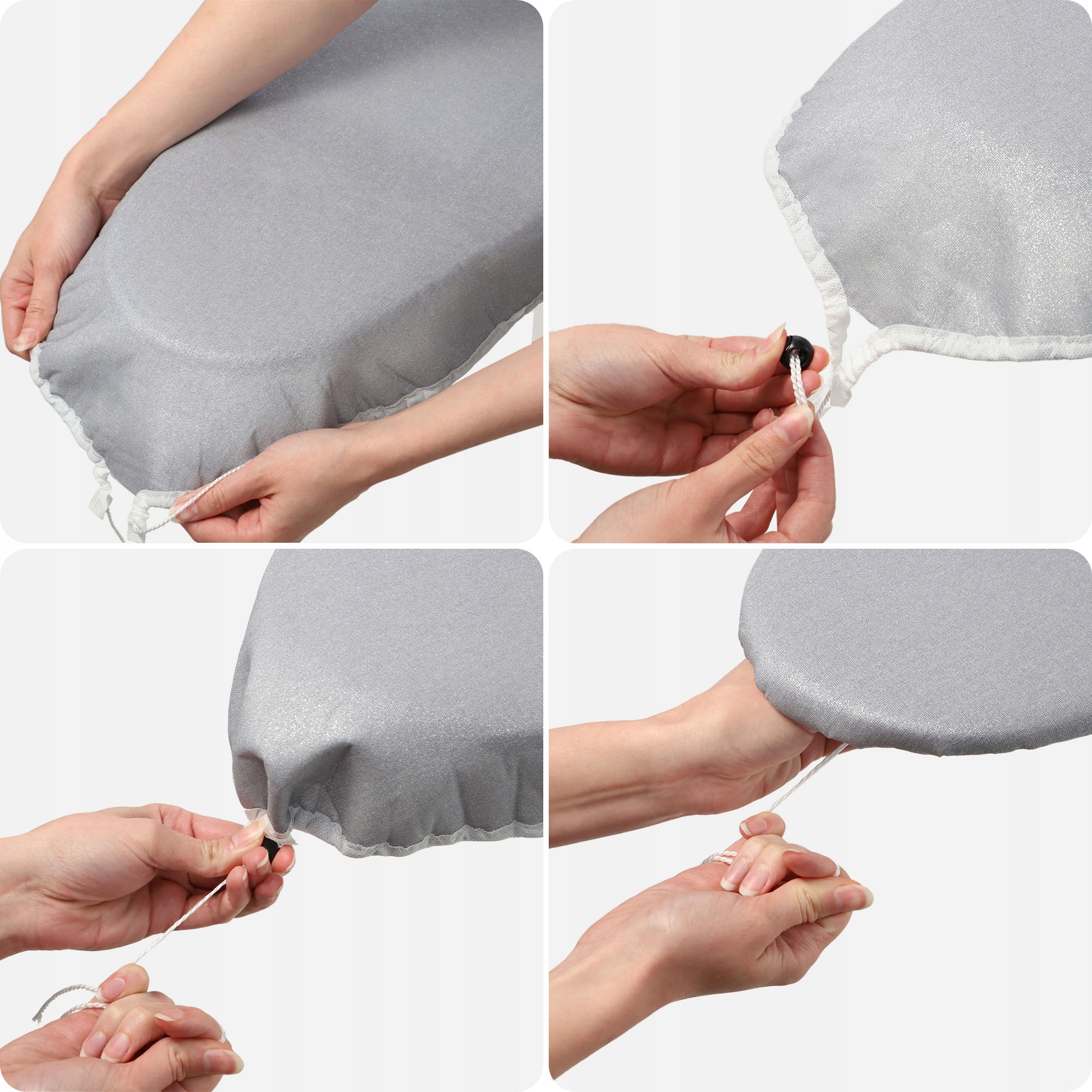 ✅ЛЕГКАЯ ПОДГОТОВКА ПОД ФОРМУ ДОСКИ - инновационная шнурок со стопором позволяет точно подогнать чехол к доске, обеспечивающий стабильность при глажке. Вам не придется беспокоиться о том, что чехол соскользнет с доски.