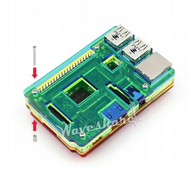 Чехол для Raspberry Pi 3, Raspberry Pi 2 model B и Raspberry Pi B+, цвет радуги из акрила. Правильно подготовленные отверстия позволяют подключить ЖК-дисплей и модули расширения.