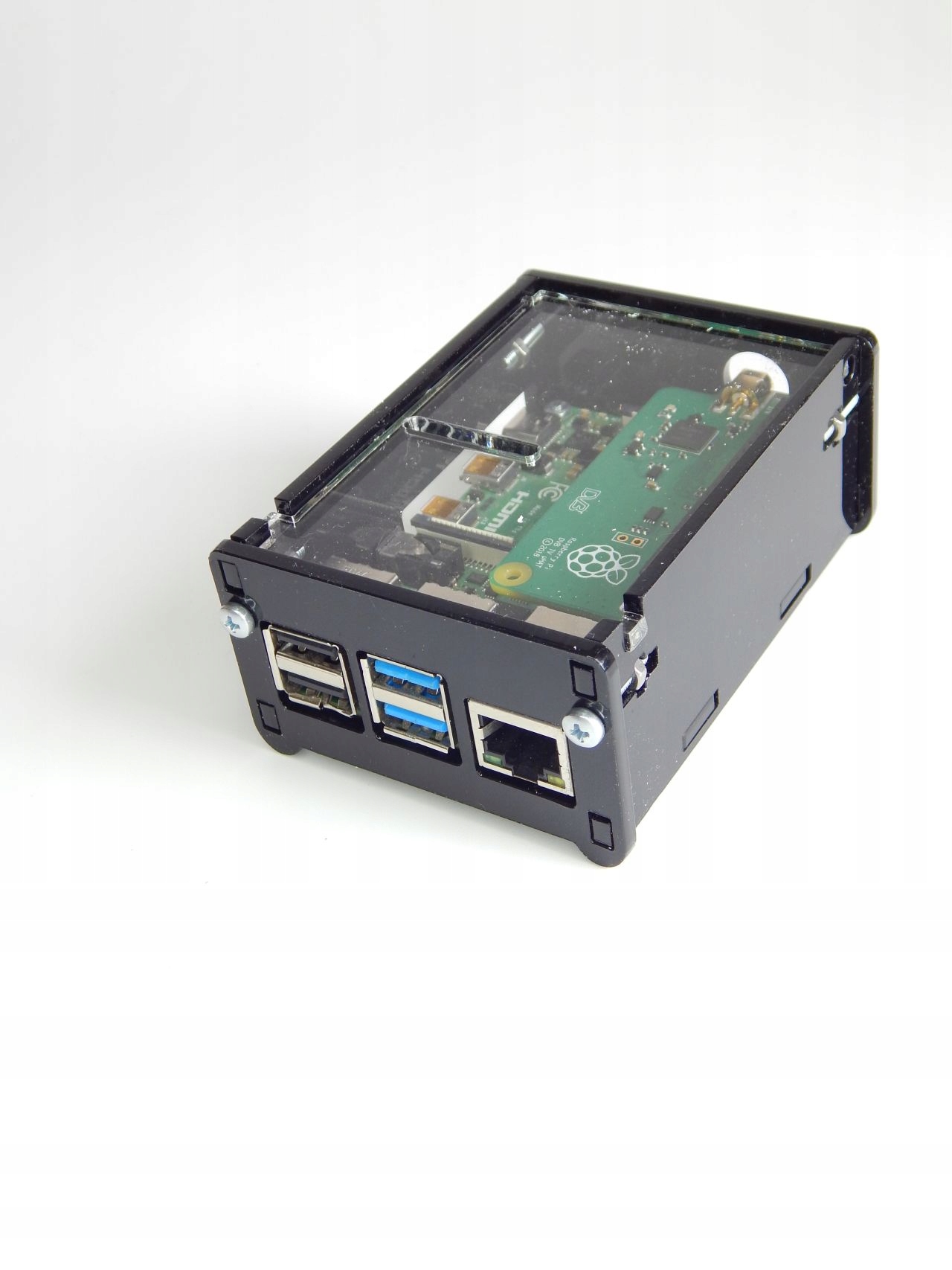 Корпус, предназначенный для Raspberry Pi 4b+ с крышкой тюнера TV HAT DVB-T, изготовлен из акрила. Корпус со встроенными со всех сторон и открывающейся верхней частью состоит из шести частей, собранных с помощью прилагаемых винтов. Плата Raspberry с накладкой крепится к нижней части корпуса, что дополнительно стабилизирует электронику. Размеры корпуса в сложенном виде 98 x 67 x 40 мм