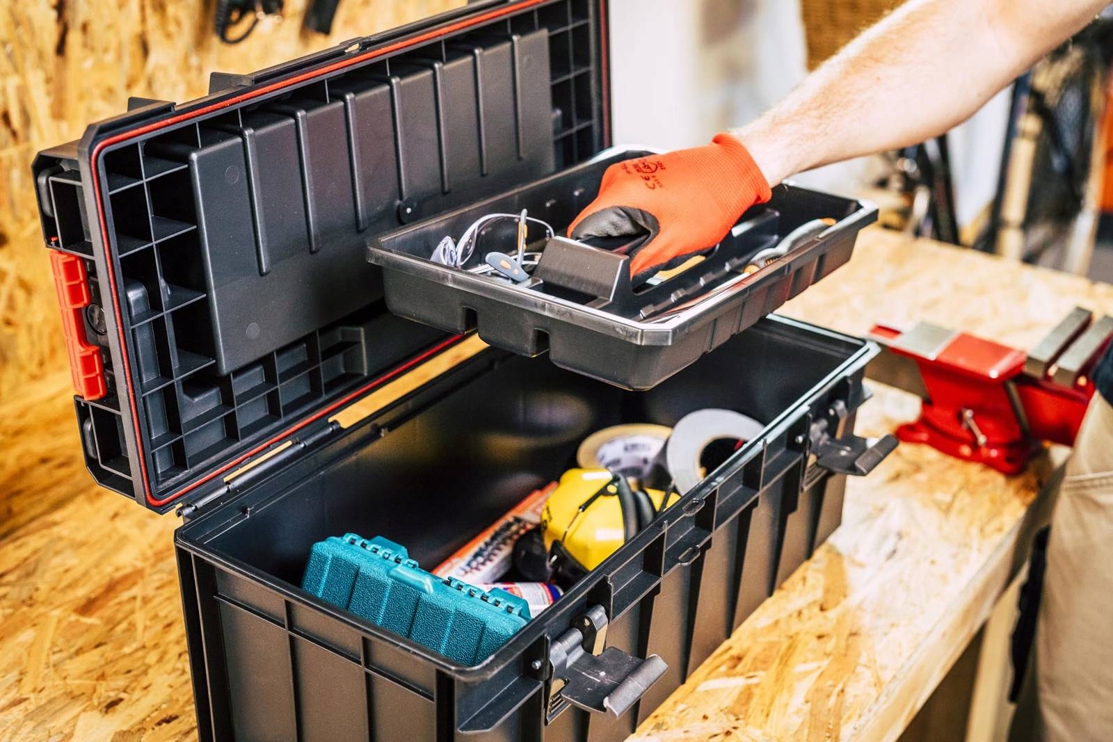 - Уплотнитель в крышке позволяет быстро и безопасно мыть коробки (например, с помощью мойки высокого давления) без риска затопления инструментов.