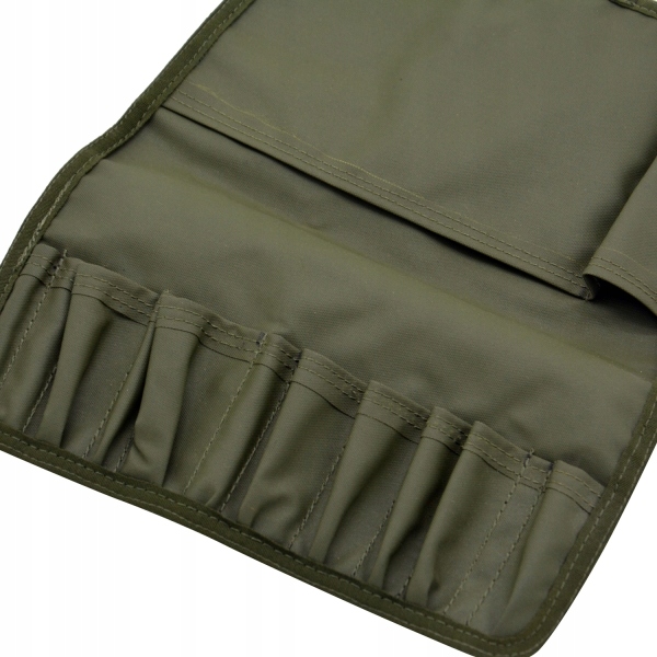 Набор для чистки оружия британской армии. Множество отделений и слотов для аксессуаров, шомполов и инструментов. Изготовлен из очень толстого нейлона. Сложил пополам и завязал. Отличный ящик для мелких вещей. Пустой комплект, никакого оборудования.