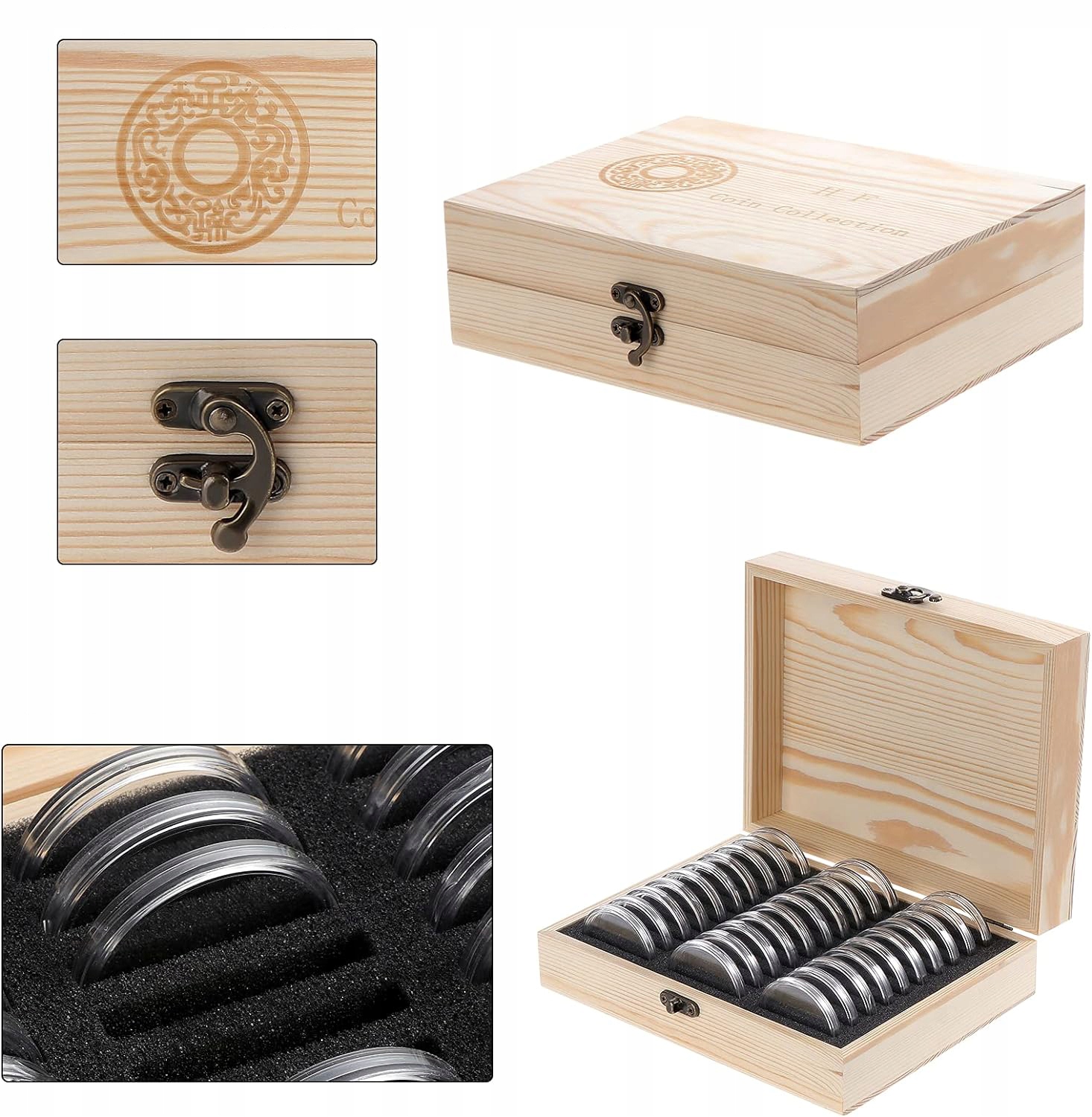🪙🪙 【Деревянный ящик для хранения монет】 б> Наш ящик для хранения монет изготовлен из высококачественной сосновой древесины, с полированной поверхностью, вмещает 30 пластиковых капсул для монет, прозрачные капсулы для монет позволяют легко хранить, просматривать и обменивать монеты. Деревянный ящик для хранения монет практичен и долговечен, он отлично подходит для защиты капсул для монет, их сортировки и порядка.