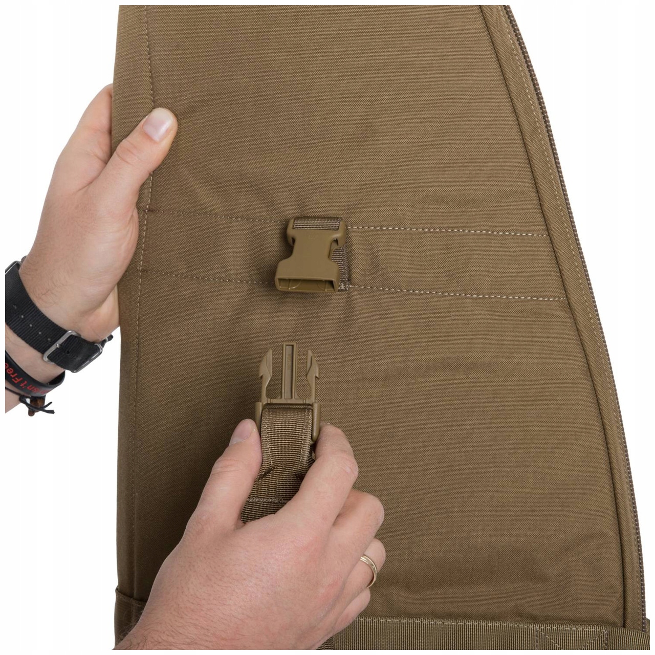 Основное отделение имеет внутренние стабилизаторы из ленты. Эти стабилизаторы могут быть настроены пользователем индивидуально в соответствии с переносимым оружием.