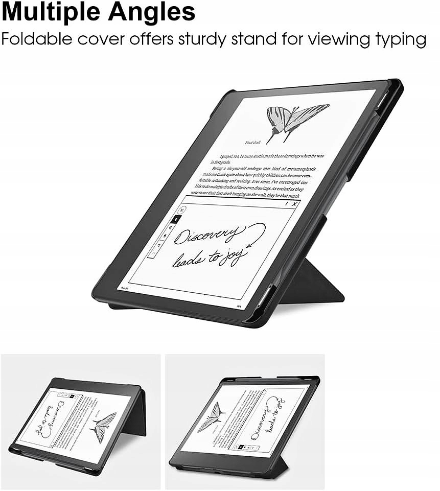 Чехол Durable Lock отлично защищает читателя. Чехол жесткий, но тонкий, его легко хранить и переносить. Поэтому он подходит для внутри и снаружи. В корпусе имеется встроенный держатель для сенсорного стилуса и вырезы для элементов управления. Ридер можно надежно зафиксировать в пластиковом контейнере, поэтому риск его выпадения исключен. В то же время весь дисплей удобно доступен. Материал хорошо стирается и не задерживает грязь. Чехол точно подходит только для модели Kindle Scribe (10,2"). Благодаря функции автоматического сна/пробуждения вам не понадобится никакая кнопка активации. Дизайн сдержанный и простой, но в то же время очень практичный благодаря встроенной подставке, которую можно сложить во многих положениях. Материалы премиум-класса - изготовлены из прочной синтетической кожи с мягкой внутренней частью, предотвращающей появление царапин. Твердое заднее покрытие надежно фиксирует ридер - он плотно прилегает и прочный.