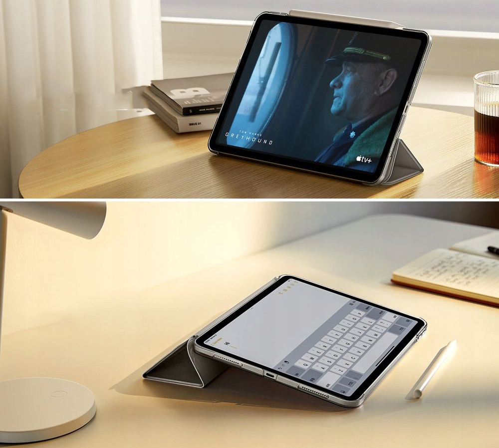 Ascend Trifold идеально прилегает к iPad, надежно прилегает к нему и имеет матовое покрытие, поэтому ваше устройство всегда будет чистым и без жирных следов. У Ascend Trifold есть еще одно функциональное преимущество — он автоматически выводит iPad из режима сна и переводит его в спящий режим, когда вы его открываете и закрываете.