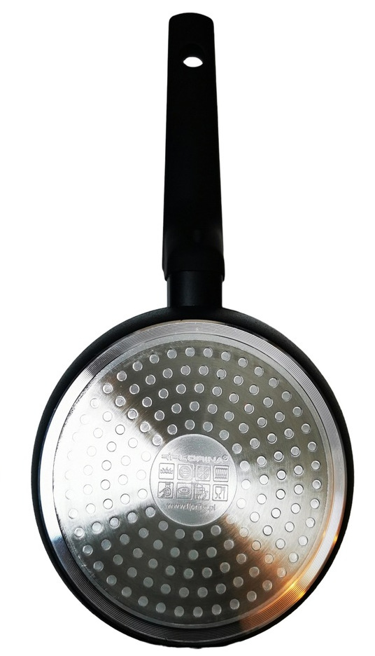 Для изготовления посуды использован высококачественный алюминий, покрытый двухслойным антипригарным покрытием со структурой камня . Благодаря этому кастрюля нагревается равномерно и не дает продуктам прилипать ко дну.