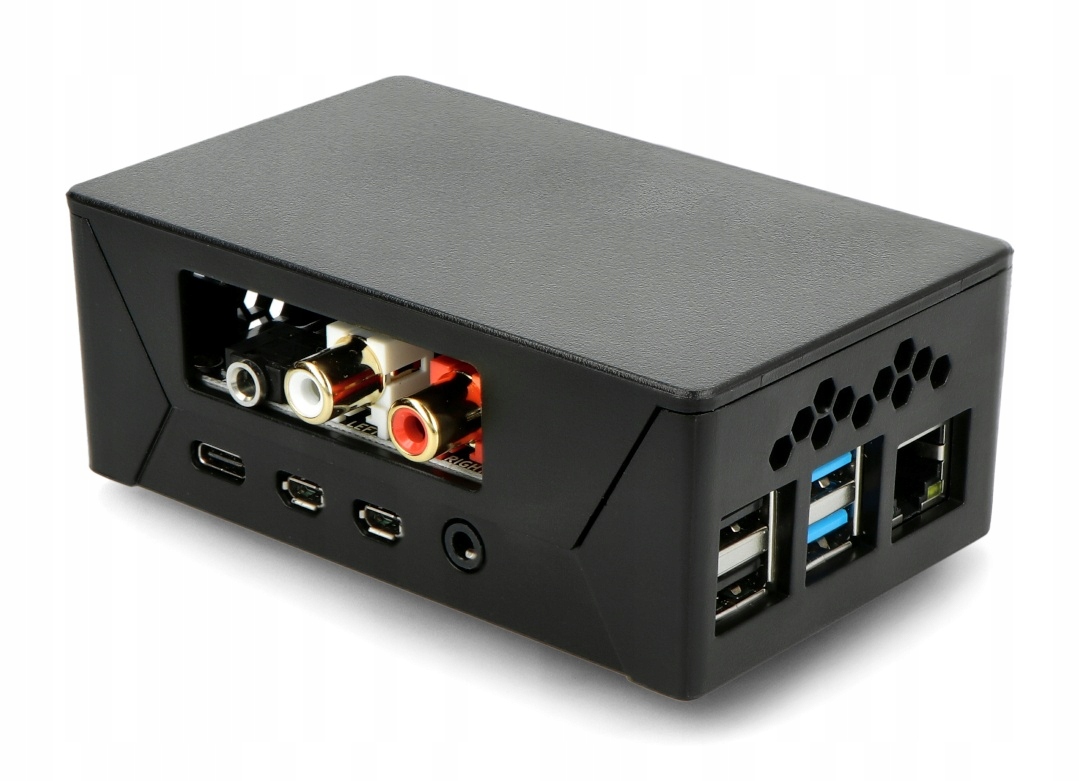 Простота сборки без инструментов, двухсекционный корпус, предназначенный для Raspberry Pi 4B и HiFiBerry. Соответствующий размер внутренней части корпуса позволяет прикрепить к миникомпьютеру площадки или радиаторы. В корпусе предусмотрено специальное место для вентилятора размерами 30 x 30 мм. Передняя и задняя части содержат вентиляционные отверстия. Своей универсальностью корпус обязан отверстиям подходящего размера для разъемов, которые подходят к большинству накладок Raspberry Pi 4B.