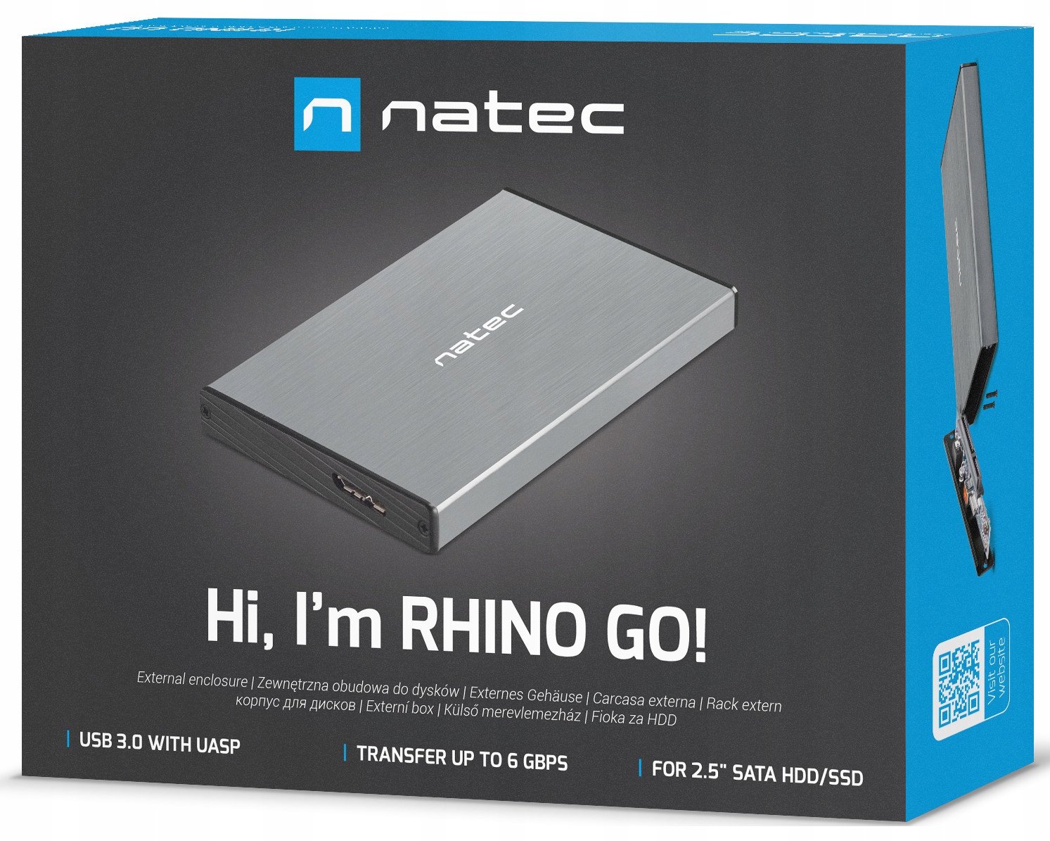 Внешний корпус Rhino GO обеспечивает очень быструю передачу данных, сохраняя при этом высокую функциональность. Благодаря использованию порта USB 3.0 с протоколом UASP пользователь может передавать данные со скоростью до 6 Гбит/с. Корпус поддерживает интерфейс SATA I/II/III 9,5 мм, а также жесткие и твердотельные накопители емкостью до 4 ТБ.