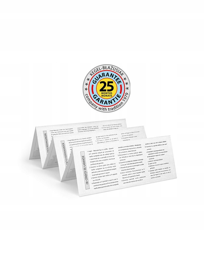 Новый расширенный гарантийный срок действует с 1 марта 2018 г. Гарантия предоставляется в письменной форме и находится внутри упаковки. На продукции и этикетках указана информация о действующей гарантии, но мы, как производитель с 40-летней традицией, примем во внимание любые рекламации в течение 25 месяцев со дня продажи. Предметом продажи является новая продукция, без дефектов. Если возникнут какие-либо дефекты, мы несем за них полную ответственность. Гарантия позволяет подать рекламацию в течение 25 месяцев с момента продажи.