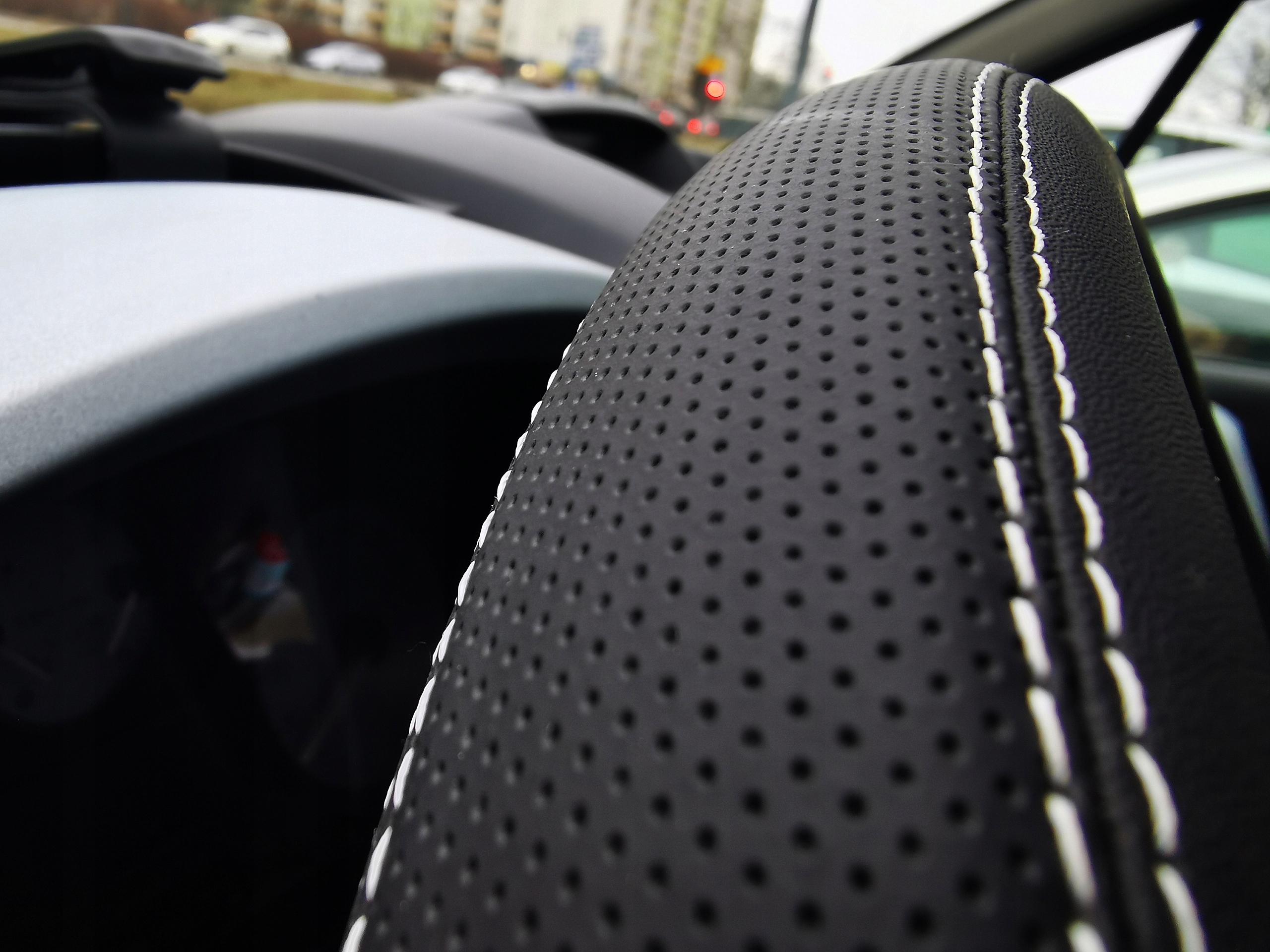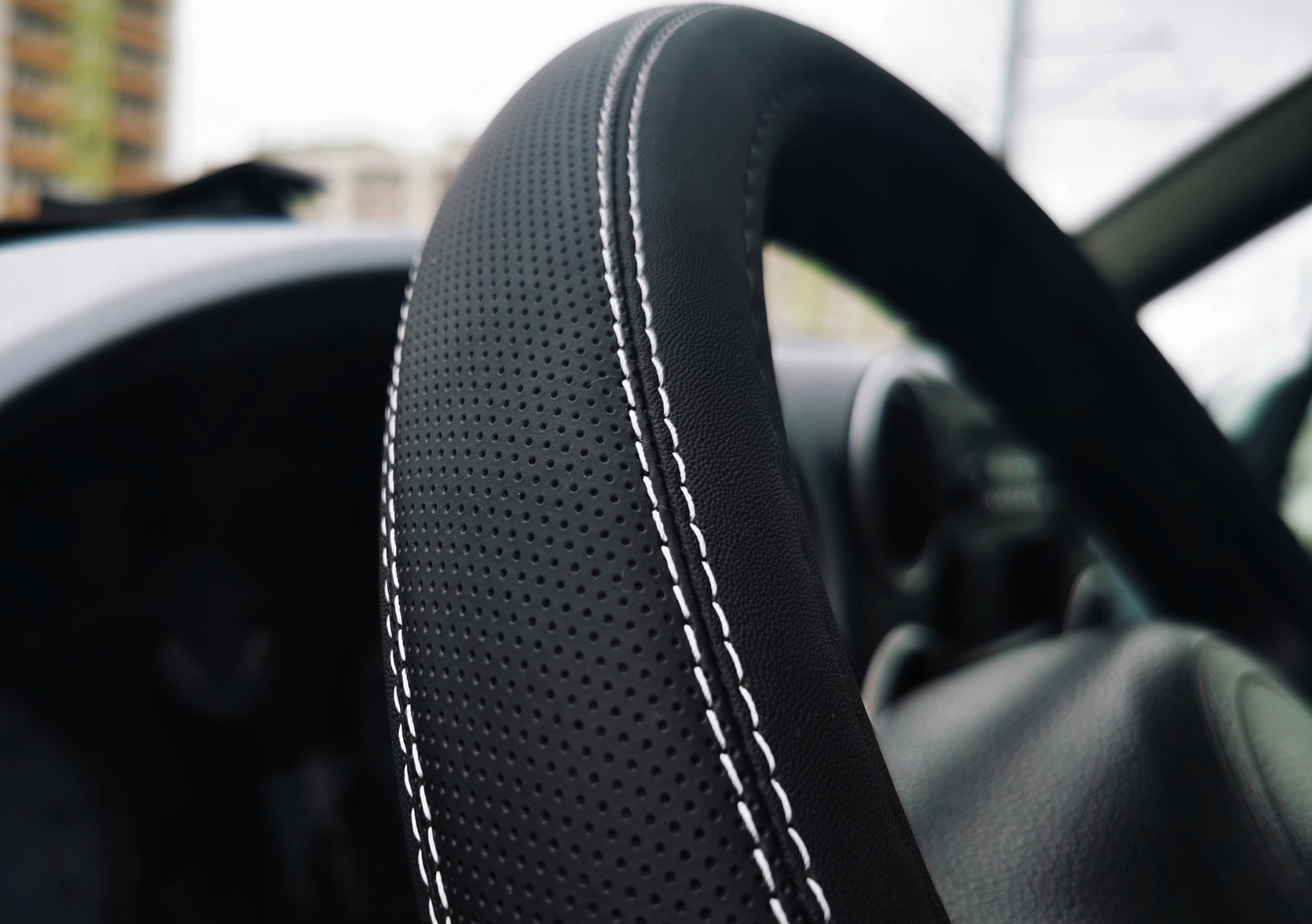 Чехол на руль из высококачественной перфорированной экокожи в сочетании с гладкой экокожей (черный матовый).