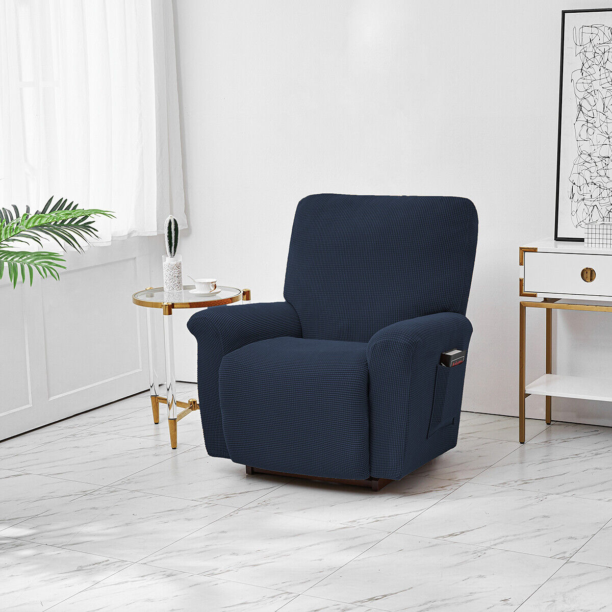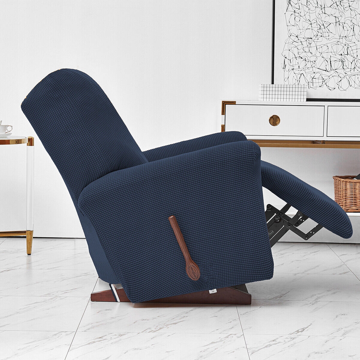 【Всесторонняя защита】 Наша Эластичные чехлы для диванов с откидной спинкой могут полностью обернуть ваше кресло, обеспечивая комплексную защиту на 360 градусов от пятен, разливов, слез, шерсти домашних животных и истирания, покрывая пятна и недостатки повседневной жизни. Наш выдвижной чехол имеет эластичные ремни по нижним краям. Просто вставьте крючок в петли спереди и сзади, чтобы надежно закрепить чехол на месте.