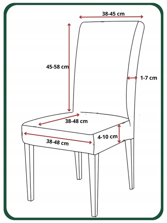 На графике рядом с размерами стульев, которые соответствует нашей крышке. Если у вас есть + - 2 см больше/меньший стул - наша обложка все равно подойдет!