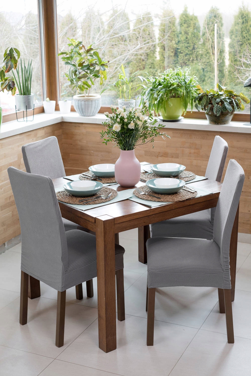 ✔ Чехлы изготовлены из смеси полиэстера. и эластан, поэтому идеально подходят под разные формы стульев.