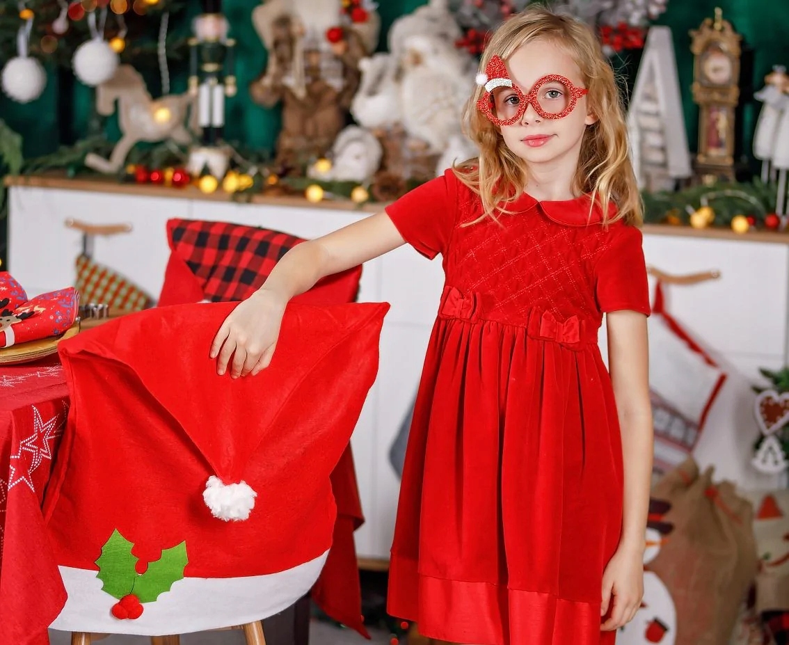 Чехол на стул в виде шапки Санты. Размеры обложки 49 х 60 см в самой длинной точке. Изготовлен из нетканого материала. Украшен зеленой нашивкой в виде веточки омелы и белым помпоном. Возможна поставка чехлов без украшений, сообщите об этом продавцу. Вы получаете в наборе 4 штуки