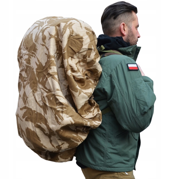 Оригинальный чехол для большого рюкзака из ресурсов британской армии. Сделана в пустынной версии - Desert DPM. Изделие оснащено идущим по всей окружности шнуром с двумя стопорами, позволяющими подогнать чехол под размер багажа. Благодаря компактному дизайну аксессуар занимает мало места, что делает его чрезвычайно удобным и простым в транспортировке.