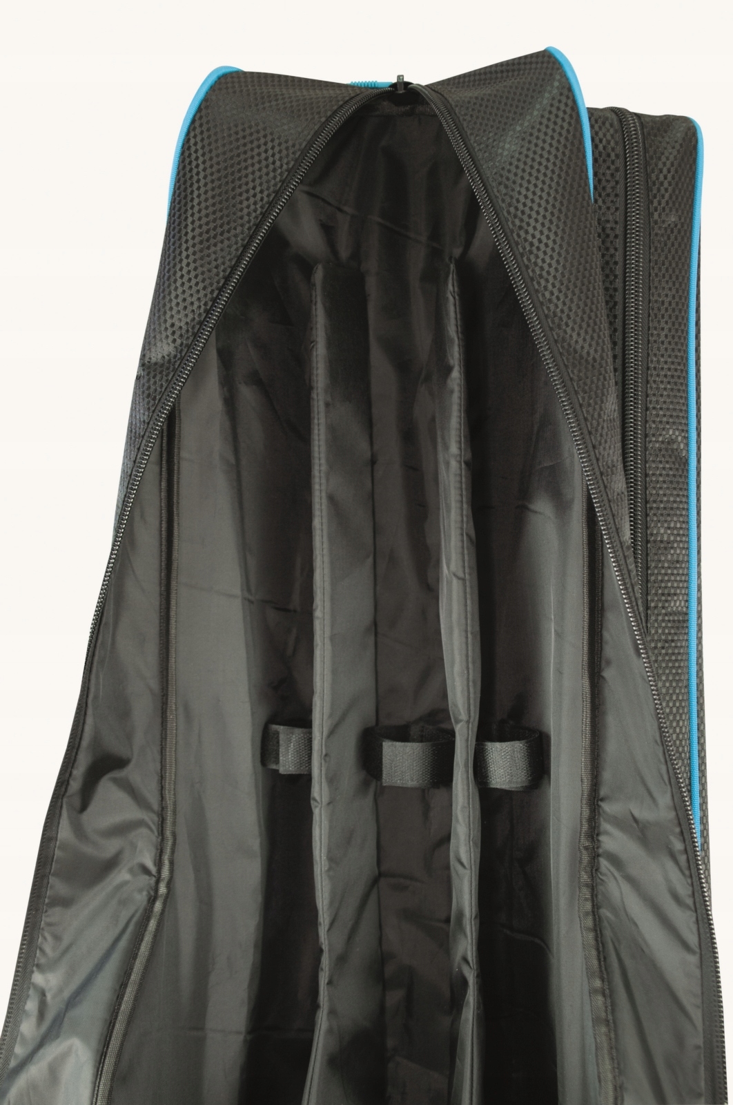 Благодаря специально разработанному внутреннему отделению чехол вмещает 3 удилища с катушками, сохраняя при этом ширину стандартного чехла на 2 удилища. Внутренние пенопластовые перегородки и липучки защищают не только удилища и катушки, но также леску и комплект с поплавком или корзиной для приманки. В чехле также есть два внешних отделения для подсака, зонта или других длинных аксессуаров. Жесткое, легко чистящееся дно защищает от влаги при вертикальном положении чехла.