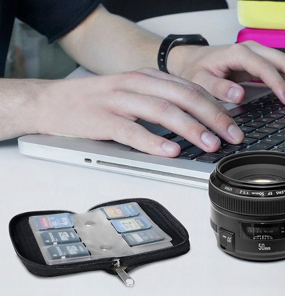 - Чехол укомплектован с застежкой-молнией, позволяющей быстро открывать и закрывать, обеспечивая легкий доступ к картам памяти.