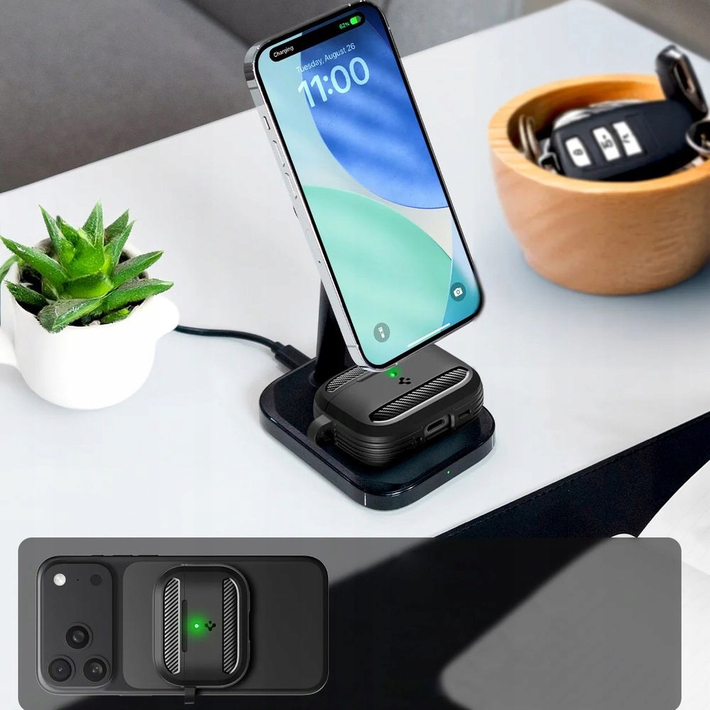 Кейс позволяет выполнятьиндуктивную и классическую зарядку. Продуманный дизайн – это и безопасность, и уникальный внешний вид.