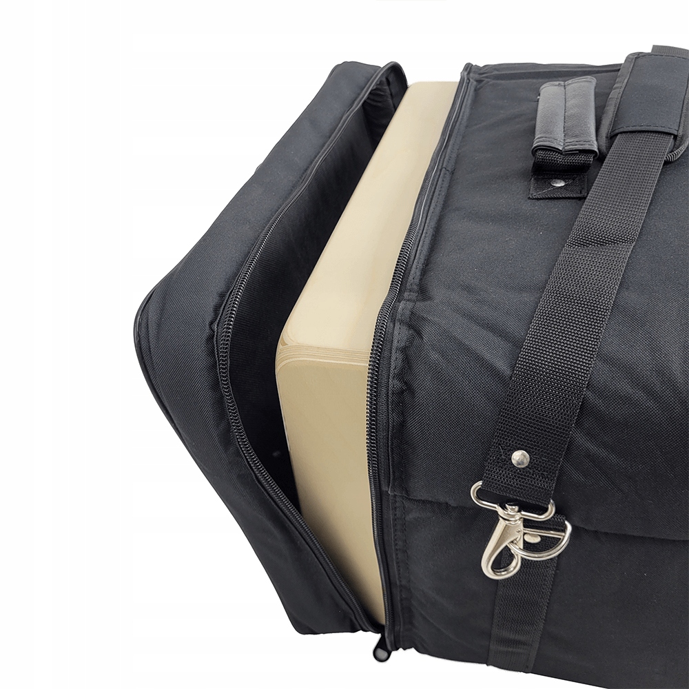 Профессиональный чехол для безопасного хранения и транспортировки кахона. Выполнен из прочной, устойчивой к истиранию и водонепроницаемой полиэфирной ткани Cordura 600D (сокращенно маркировка 600D означает количество пряжи, подходящее для данного случая). поверхность материала Чем больше количество нитей, тем толще полиэстер и более устойчив к растяжению, разрезанию или разрыву).