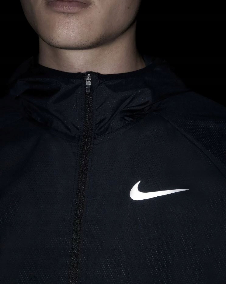 Легкая водонепроницаемая мужская куртка NIKE ESSENTIAL — ваш самый верный спутник во время беговых тренировок в дождливые дни.