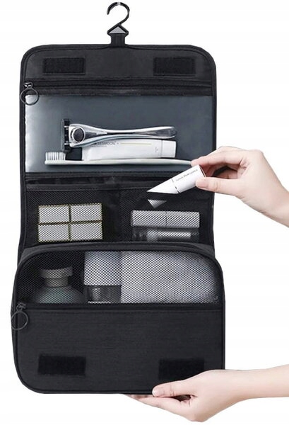 ЧЕРНАЯ МУЖСКАЯ КОСМЕТИЧЕСКАЯ СУМКА С ОТДЕЛЕНИЯМИ-ОРГАНИЗАТОРАМИ XXL