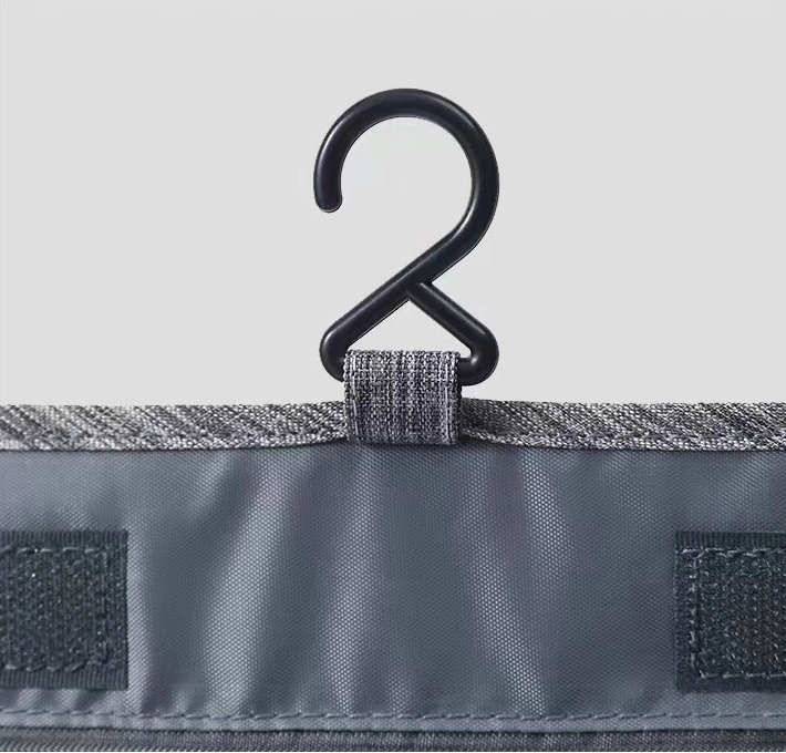 Комфорт в использовании обеспечивается не только легкостью косметички, но и наличием крючка. Благодаря ему в ванной отеля можно повесить развернутую косметичку!