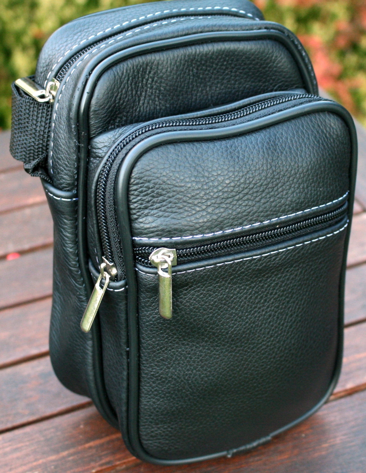 Чоловіча чорна шкіряна сумка через плече, невелика сумочка польського виробництва
