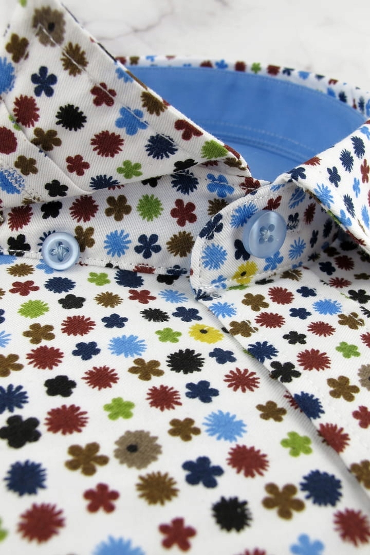 Чоловіча елегантна урочиста сорочка до костюму, біла з квітами, SLIM FIT E565