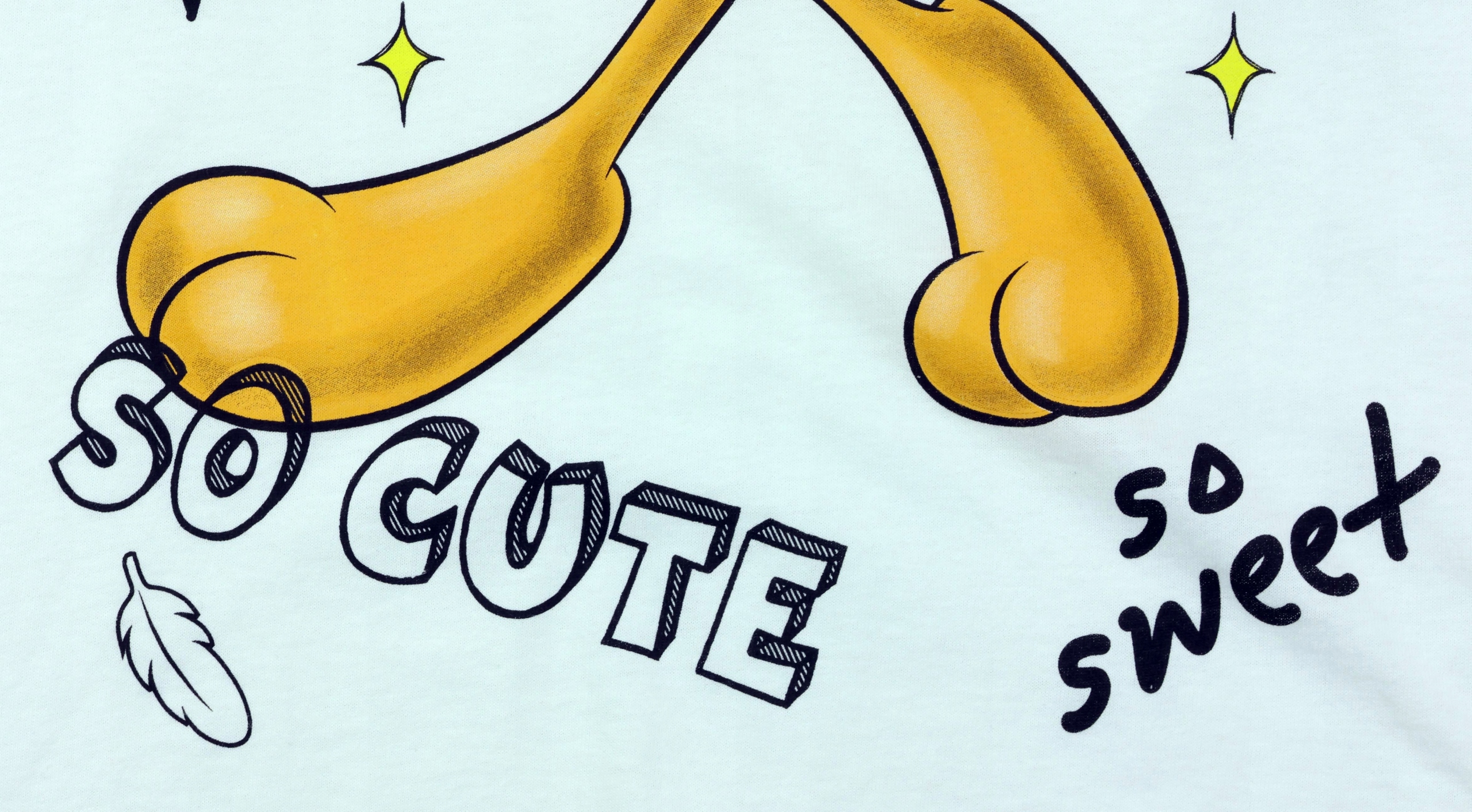 Эффект на фотографиях вызван неподходящим освещением и высокой контрастностью. Футболки на самом деле белоснежные и выглядят намного лучше.