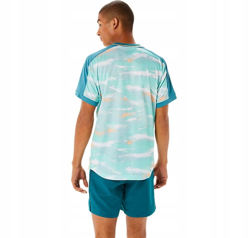 Мужская спортивная футболка от Asics, модель Match Grphic SS Top – легкая и тонкая спортивная футболка, идеально подходящая для интенсивного использования. Идеально подходит для кортов, бега или в тренажерном зале.