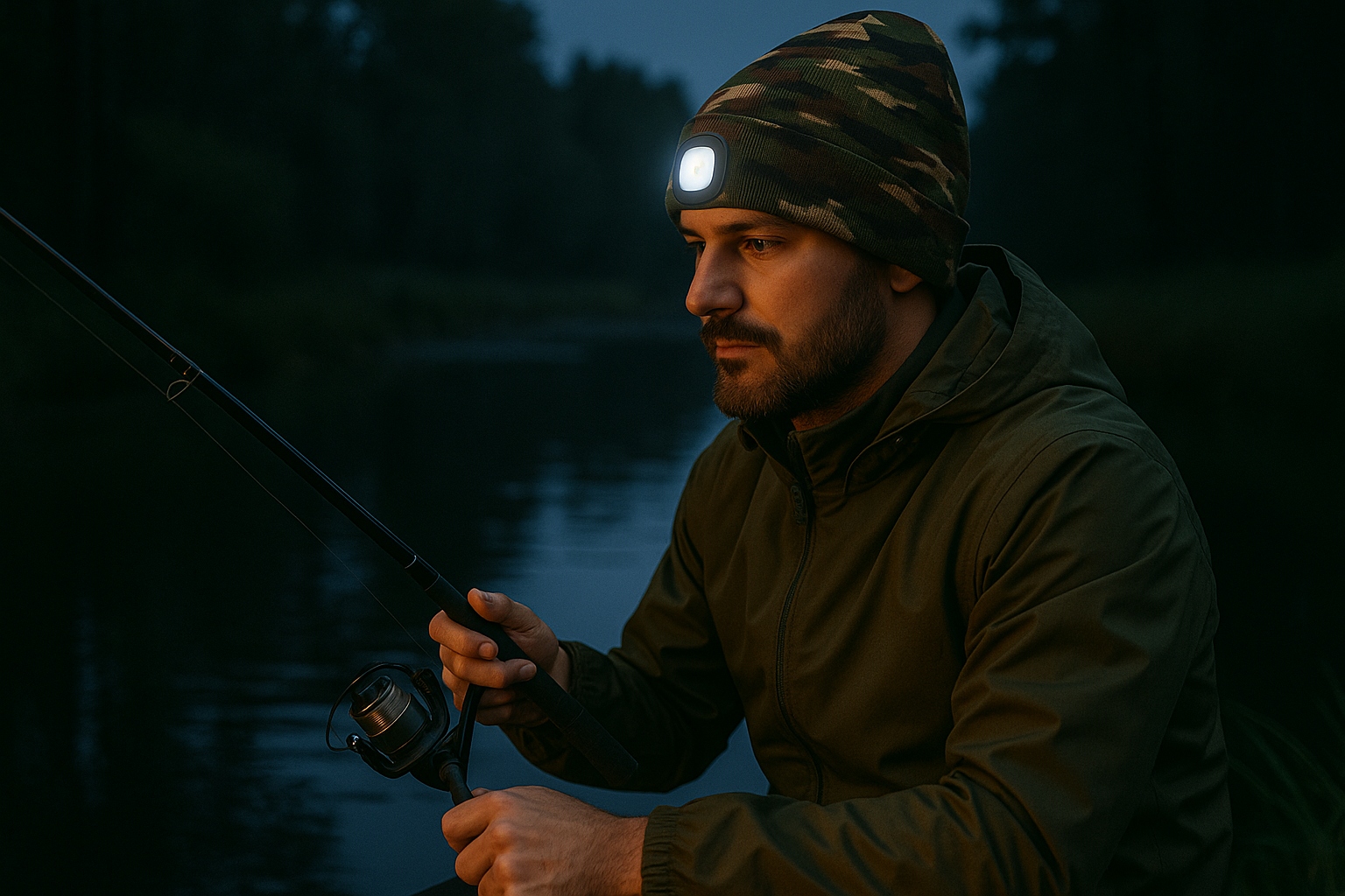 Теплая и практичная двухслойная шапка со светодиодной лампой/налобным фонарем, заряжаемая через USB, 3 режима освещения - Moro
