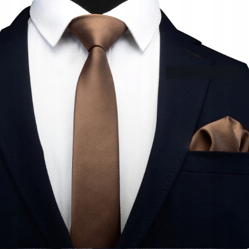 Мужской TIE коричневый однотонный + коричневый квадратный