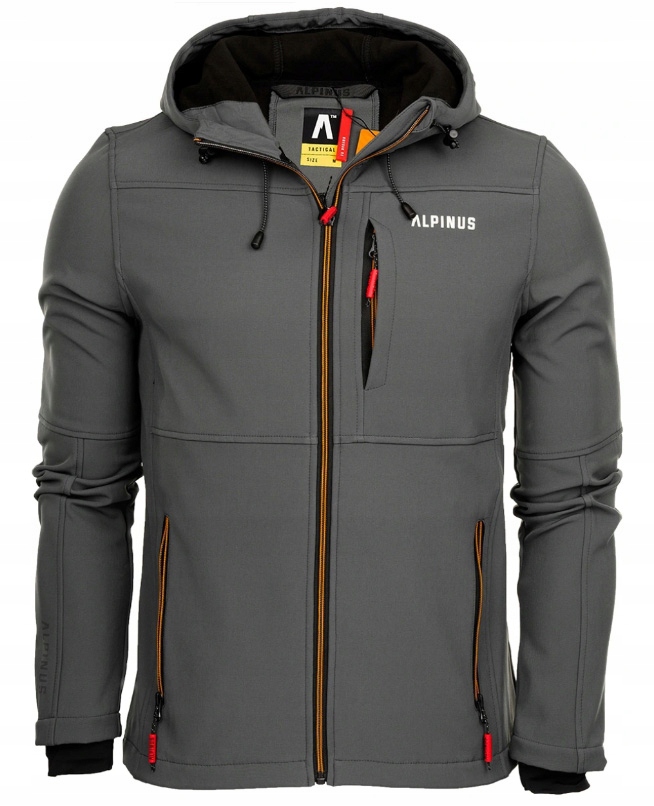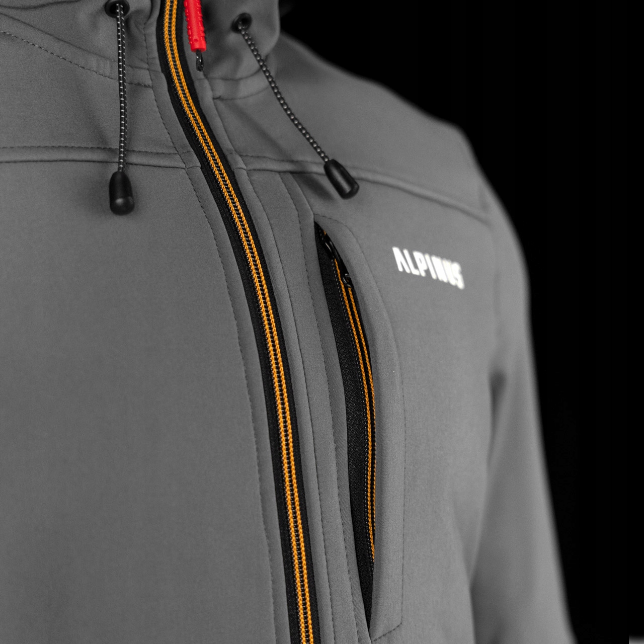 - Мужская серая куртка Softshell Alpinus — модель, созданная с учетом потребностей исследователей городских маршрутов и любителей активный отдых за городом.